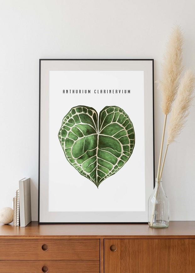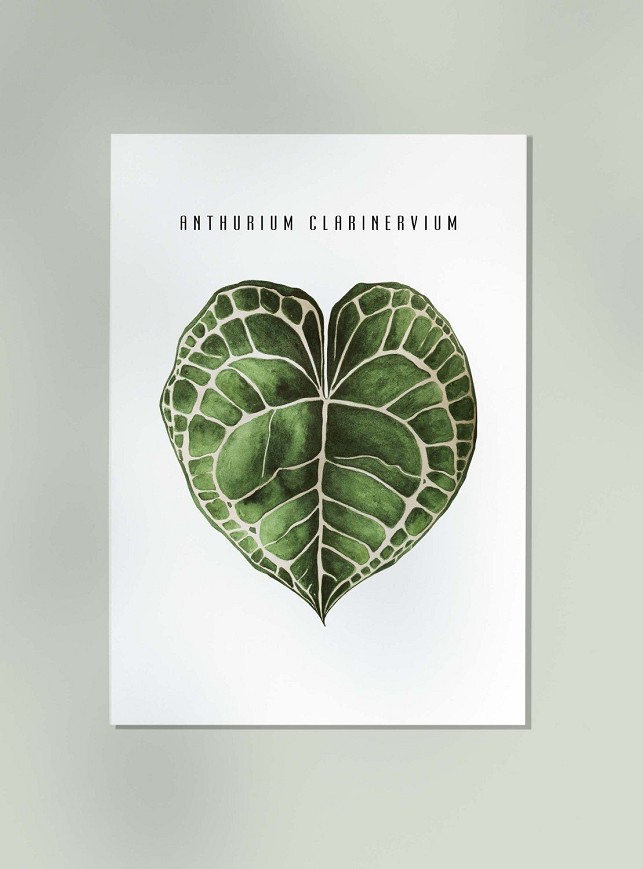 The distinctive heart-shaped leaf of the Anthurium is delicately captured in watercolor, with soft shades and detailed brushwork. A nature-inspired, elegant decoration that brings freshness to living rooms, bedrooms, or studies.