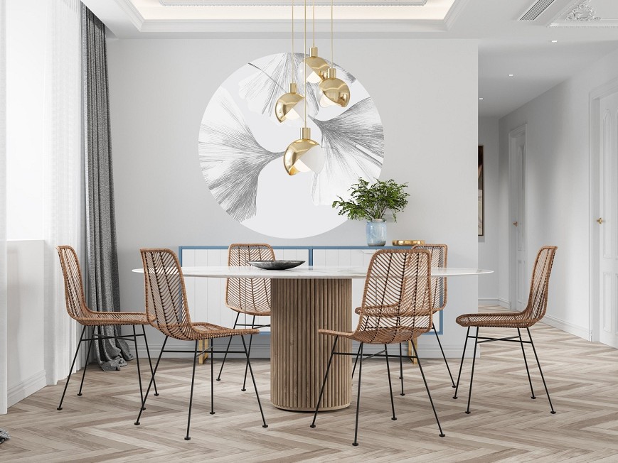 The Ginkgo biloba leaves form a subtle pattern that blends seamlessly into any interior, adding a touch of refined decoration to your space. An excellent choice for living rooms, bedrooms, dining areas, or even as a unique element in accommodations.