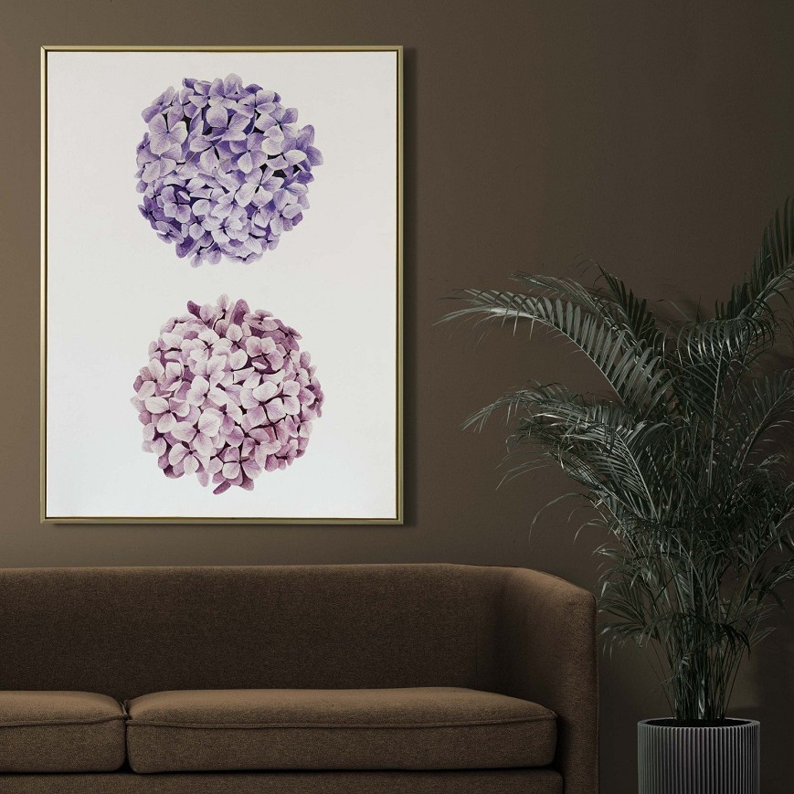 Their rounded blooms and cool tones create a romantic yet fresh effect – perfect for bedrooms or living rooms. The delicate brushstrokes of the watercolor technique add soft transitions and natural texture to the design, filling any interior with an elegant yet lively atmosphere.