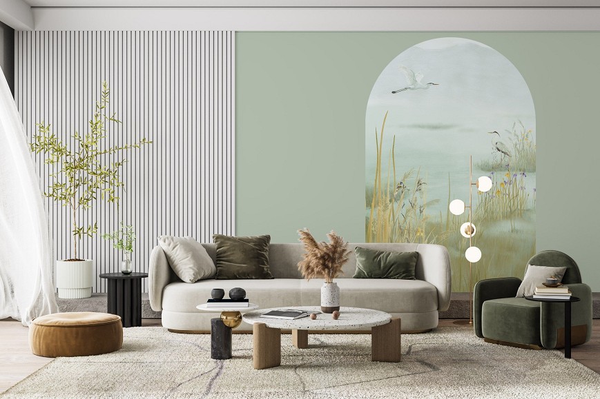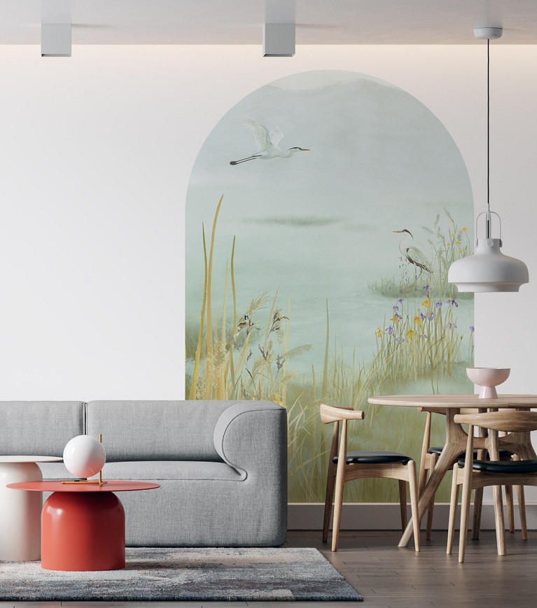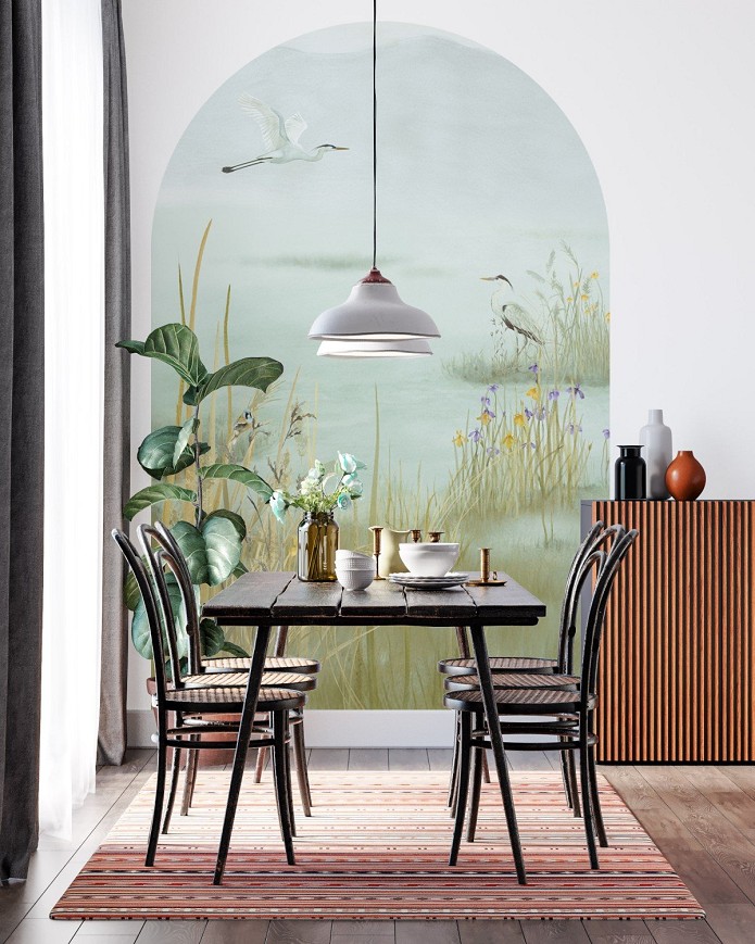 This pattern invites you to the shore of a quiet lake, to that moment when the world slows down. The delicate layers of watercolor gently melt into one another; there are no sharp contours, only a mood—like a memory you’re happy to return to. The painting carries the trace of the hand, the imprint of individuality. This pattern doesn’t dominate the space; it embraces it, creating a backdrop for silence, for thought, for the feeling of arrival. It’s as if the lake is always there behind the walls—reflecting whoever looks at it.