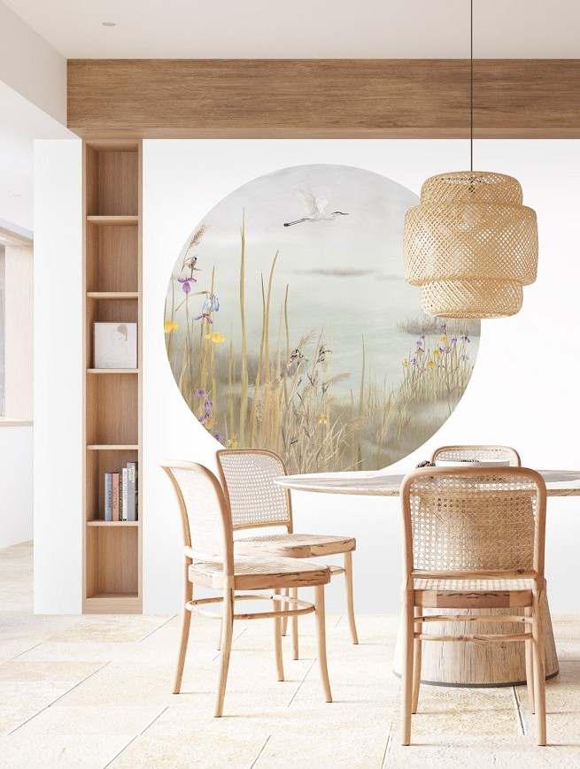 This pattern invites you to the shore of a quiet lake, to that moment when the world slows down. The delicate layers of watercolor gently melt into one another; there are no sharp contours, only a mood—like a memory you’re happy to return to. The painting carries the trace of the hand, the imprint of individuality. This wallpaper doesn’t dominate the space; it embraces it, creating a backdrop for silence, for thought, for the feeling of arrival. It’s as if the lake is always there behind the walls—reflecting whoever looks at it.