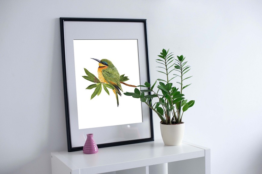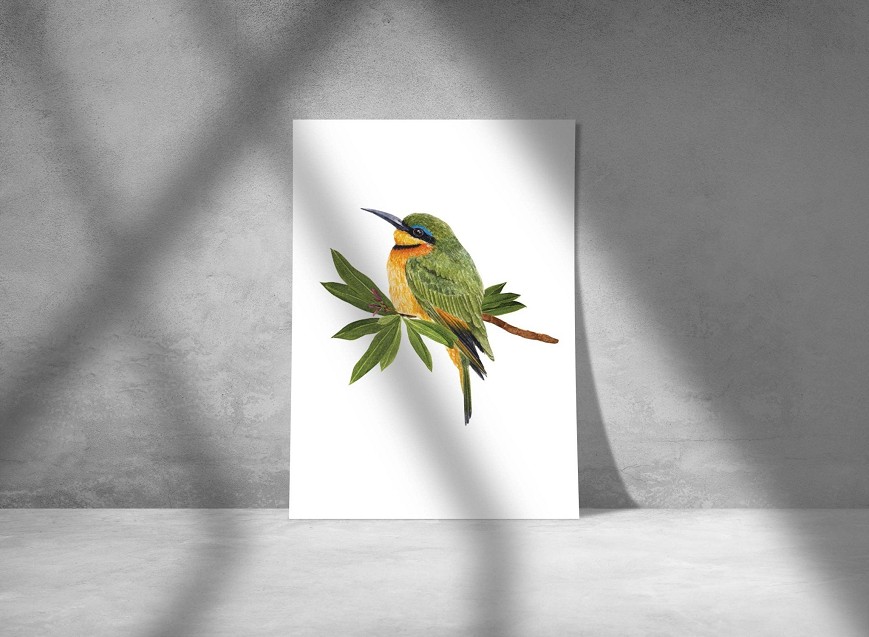 Ez a kézzel festett akvarell a gyurgyalag élénk színeit örökíti meg. Az egzotikus, mégis hazai madarunk különleges hangulatot visz otthonába, legyen szó nappaliról, hálószobáról vagy dolgozósarokról. Egyedi, természetközeli dekoráció, amely finom részleteivel és friss színvilágával minden enteriőrt feldob.