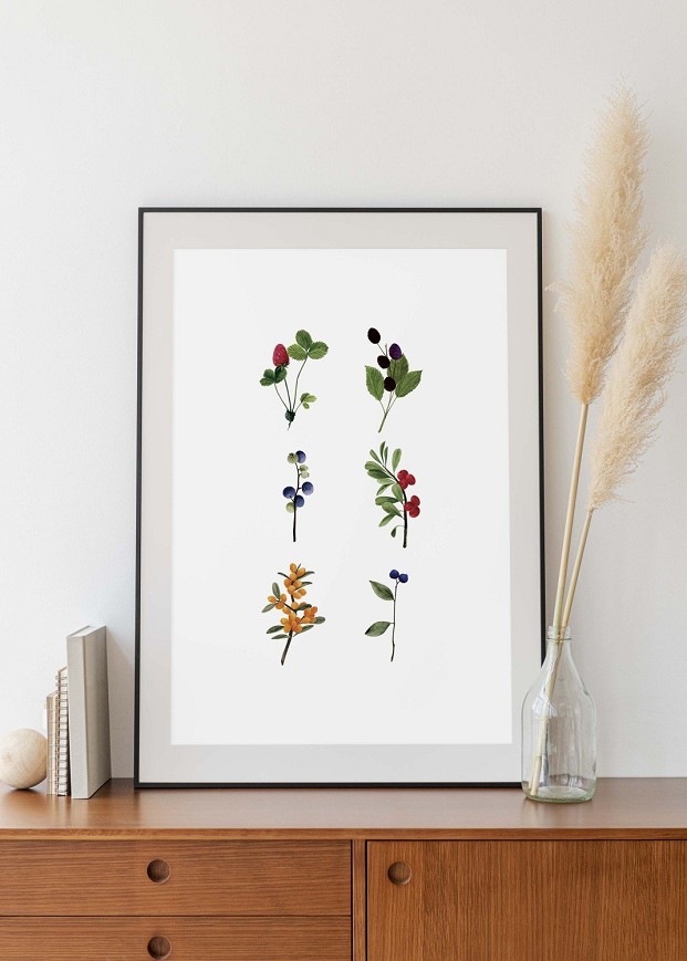 Élénk, apró bogyók finom részletekkel és lágy árnyalatokkal ábrázolva, amelyek természetközeli, vidám hangulatot kölcsönöznek bármely térnek. Ideális választás nappalik, konyhák vagy gyerekszobák dekorációjaként, ahol friss, természet ihlette megjelenést szeretnénk.