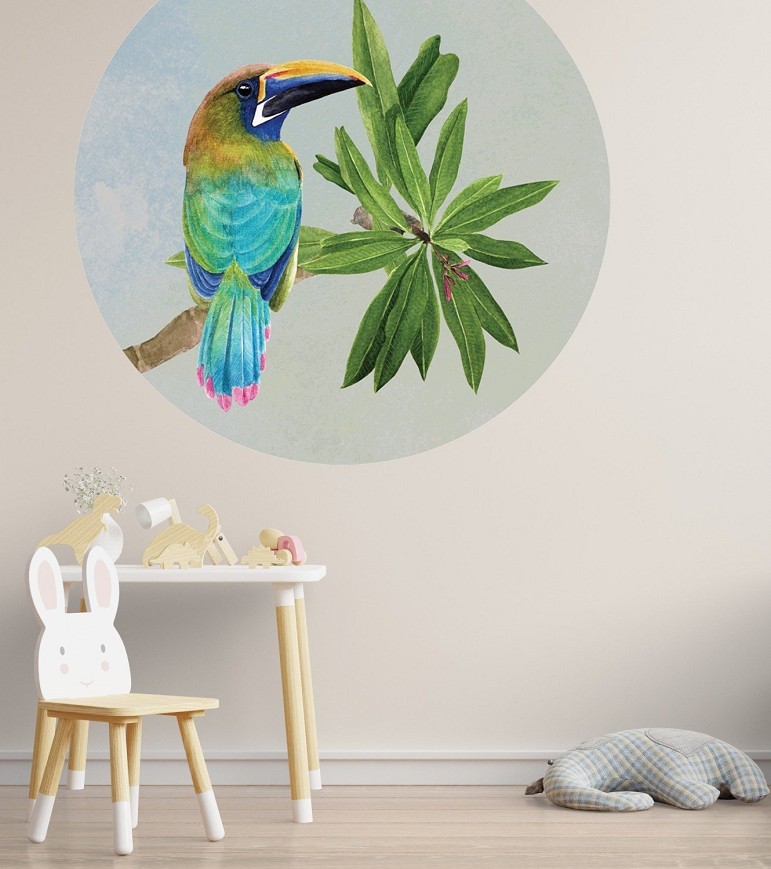 A trópusi minták és a különleges madarak kedvelői igazán fogják szeretni ezt a mintát, ugyanis kevés különlegesebb madár létezik a tukánnál. Vidám nyári hangulatot teremthetünk vele az év minden napjára. Minden térbe jól beilleszthető és a fiatalok szobáját is bátran dekorálhatják vele. Közösségi terekbe és szállásokra is alkalmas minta.