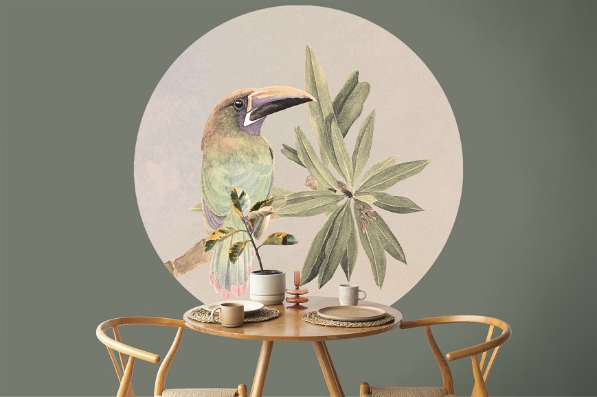 A trópusi minták és a különleges madarak kedvelői igazán fogják szeretni ezt a mintát, ugyanis kevés különlegesebb madár létezik a tukánnál. Vidám nyári hangulatot teremthetünk vele az év minden napjára. Minden térbe jól beilleszthető és a fiatalok szobáját is bátran dekorálhatják vele. Közösségi terekbe és szállásokra is alkalmas minta.
