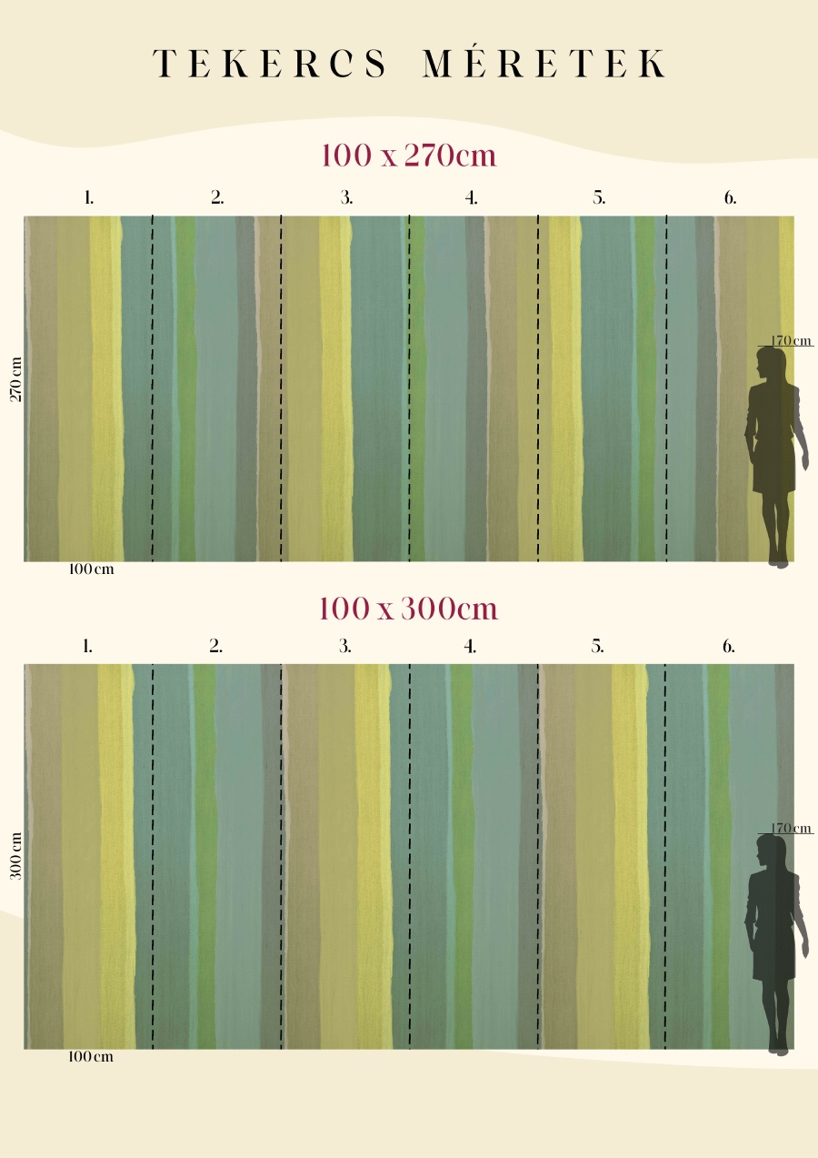 Ezt a mintát a festett vászon inspirálta. A nagyvonalúan húzott ecsetvonások színes hullámzása élettel tölti meg a teret. Tökéletes választás lehet azok számára, akik nem szeretik a figurális motívumokat, de mégis vinnének egy kis színt a hétköznapjaikba. Bátran használható minimál vagy skandináv stílusú enteriőrbe, sőt akár gyerekszobákba is nagyszerű választás lehet. A textilvászon hatású tapéta anyagon mutat a leginkább.
