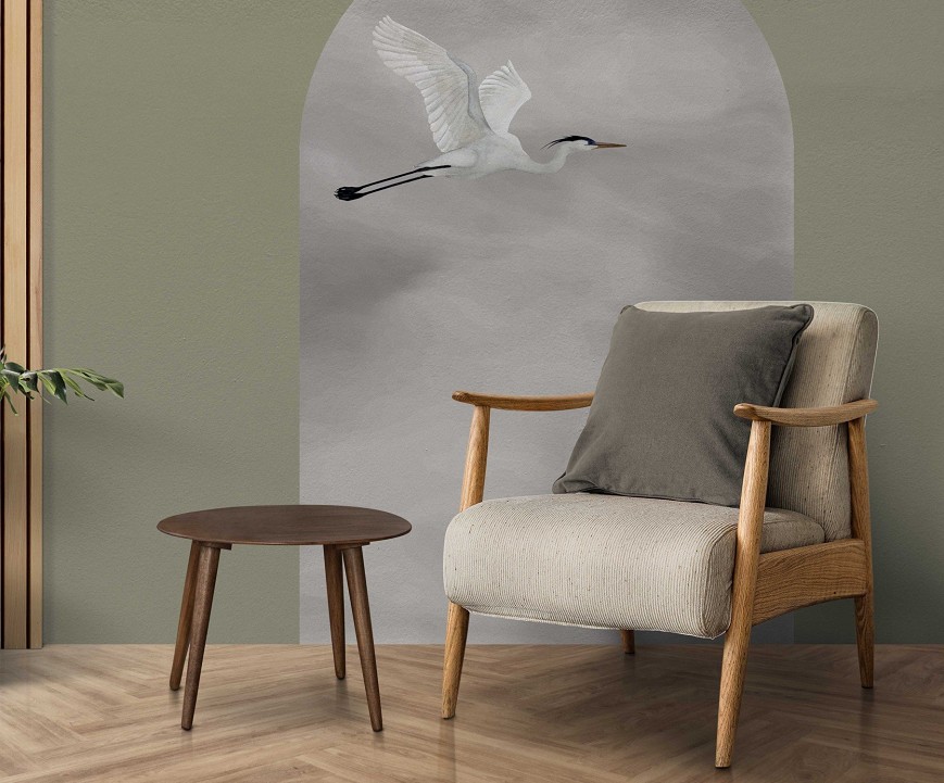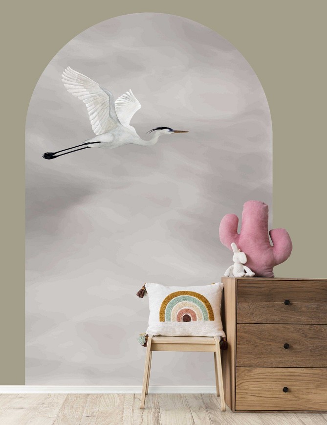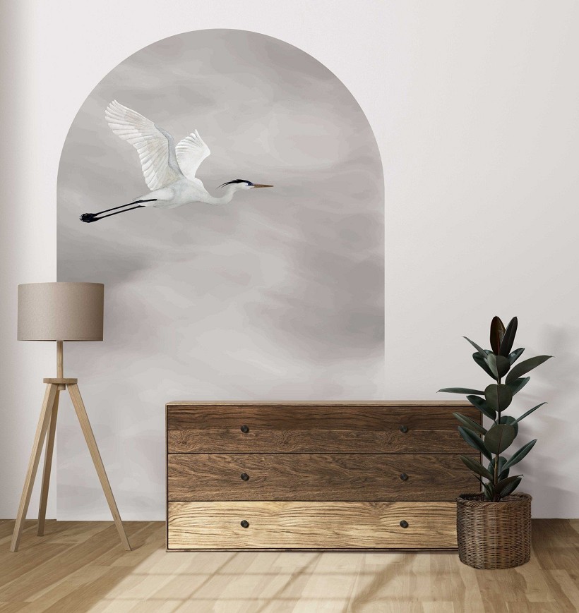 A szürke gém repte látványos mintát alkot, amely visszafogottságával hívja fel magára a figyelmet. A madarak rajongói és a minimalizmus képviselői is bátran választhatják ezt a mintát, hogy nyugodt légkört teremtsenek az otthonukban. Szálláshelyeken is nagyszerű dekorációs elem lehet.