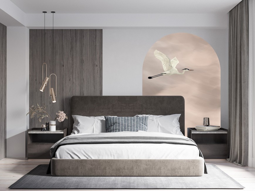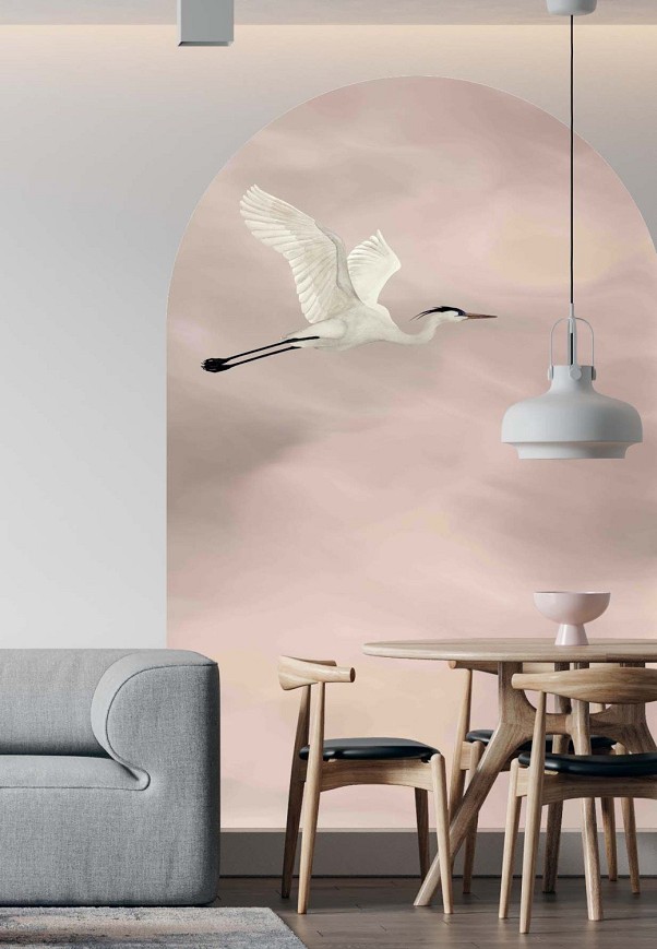 A szürke gém repte látványos mintát alkot, amely visszafogottságával hívja fel magára a figyelmet. A madarak rajongói és a minimalizmus képviselői is bátran választhatják ezt a mintát, hogy nyugodt légkört teremtsenek az otthonukban. Szálláshelyeken is nagyszerű dekorációs elem lehet.