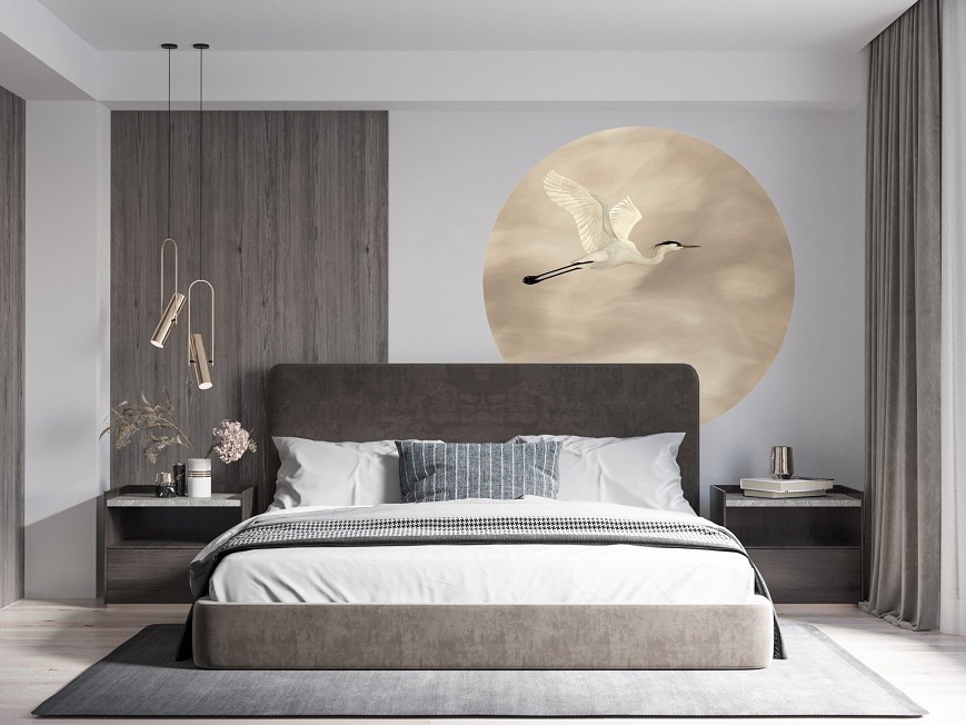 A szürke gém repte látványos mintát alkot, amely visszafogottságával hívja fel magára a figyelmet. A madarak rajongói és a minimalizmus képviselői is bátran választhatják ezt a mintát, hogy nyugodt légkört teremtsenek az otthonukban. Szálláshelyeken is nagyszerű dekorációs elem lehet.