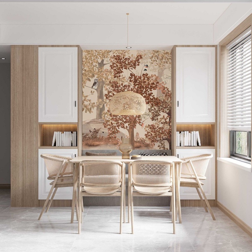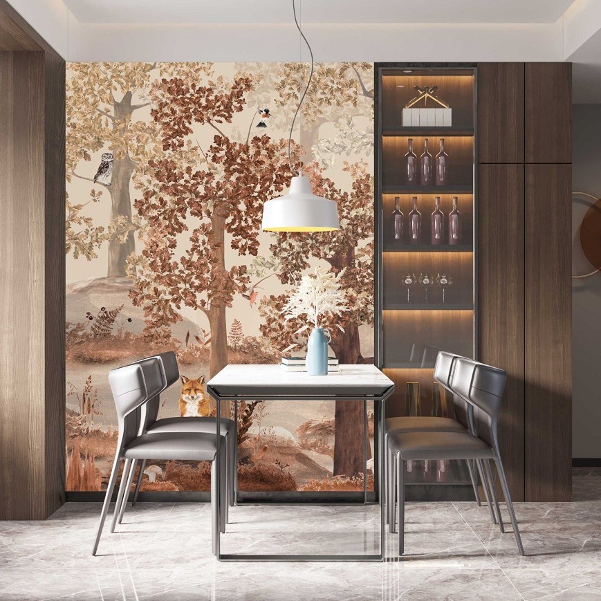 A tölgyfák árnyékában megbújó róka, a magasból figyelő kuvik és harkály, a gombák és a páfrányok mind hozzájárulnak, hogy varázslatos erdei hangulatot teremtsenek otthonunkban. Ez az egyedi tervezésű tapéta kitűnő választás lehet vidéki házak, nyaralók kiegészítőjeként, de a gyerekszobákban is mesés miliőt varázsolhatunk vele.(A minta megtalálható a Falmatricaként is kör formára szabva, öntapadó változatban)