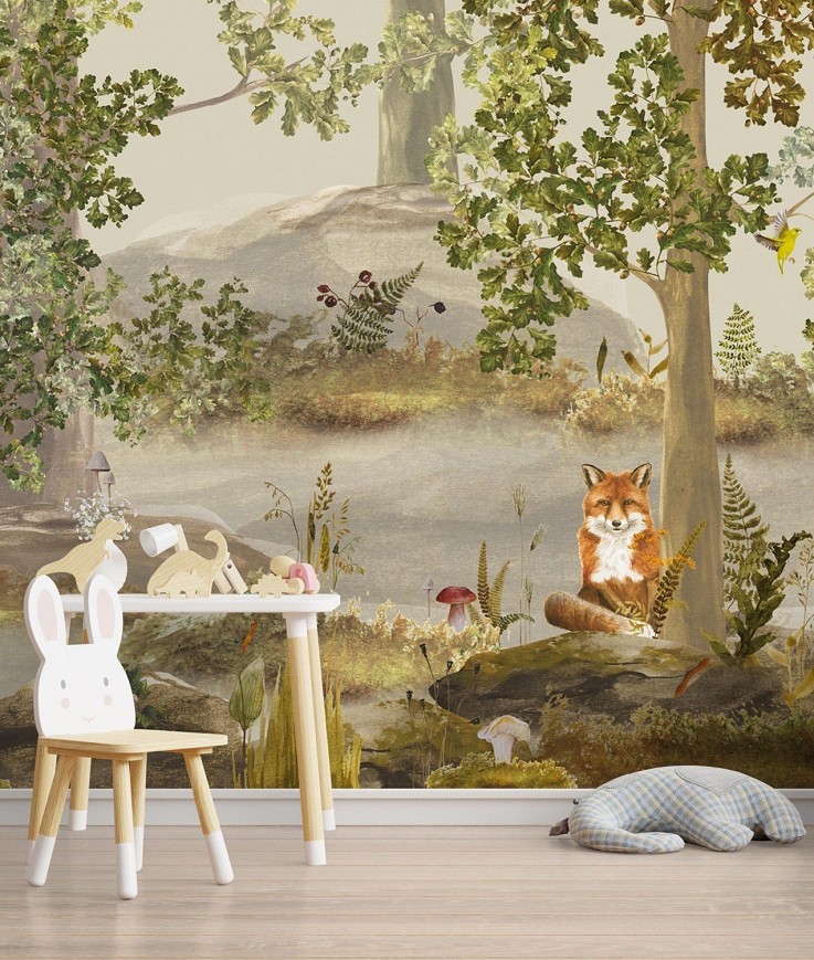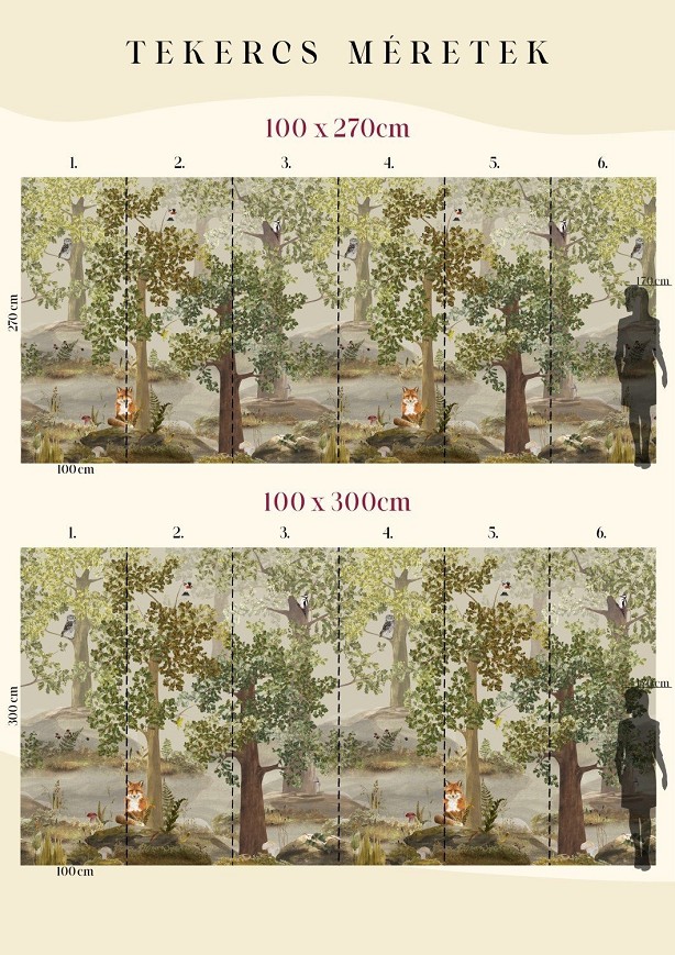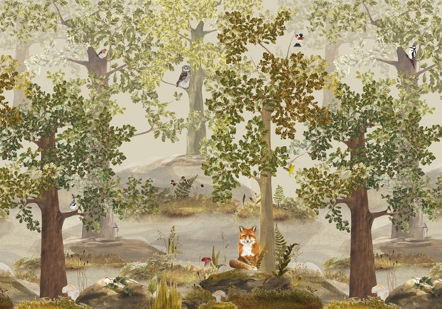 A tölgyfák árnyékában megbújó róka, a magasból figyelő kuvik és harkály, a gombák és a páfrányok mind hozzájárulnak, hogy varázslatos erdei hangulatot teremtsenek otthonunkban. Ez az egyedi tervezésű tapéta kitűnő választás lehet vidéki házak, nyaralók kiegészítőjeként, de a gyerekszobákban is mesés miliőt varázsolhatunk vele.(A minta megtalálható a Falmatricaként is kör formára szabva, öntapadó változatban)