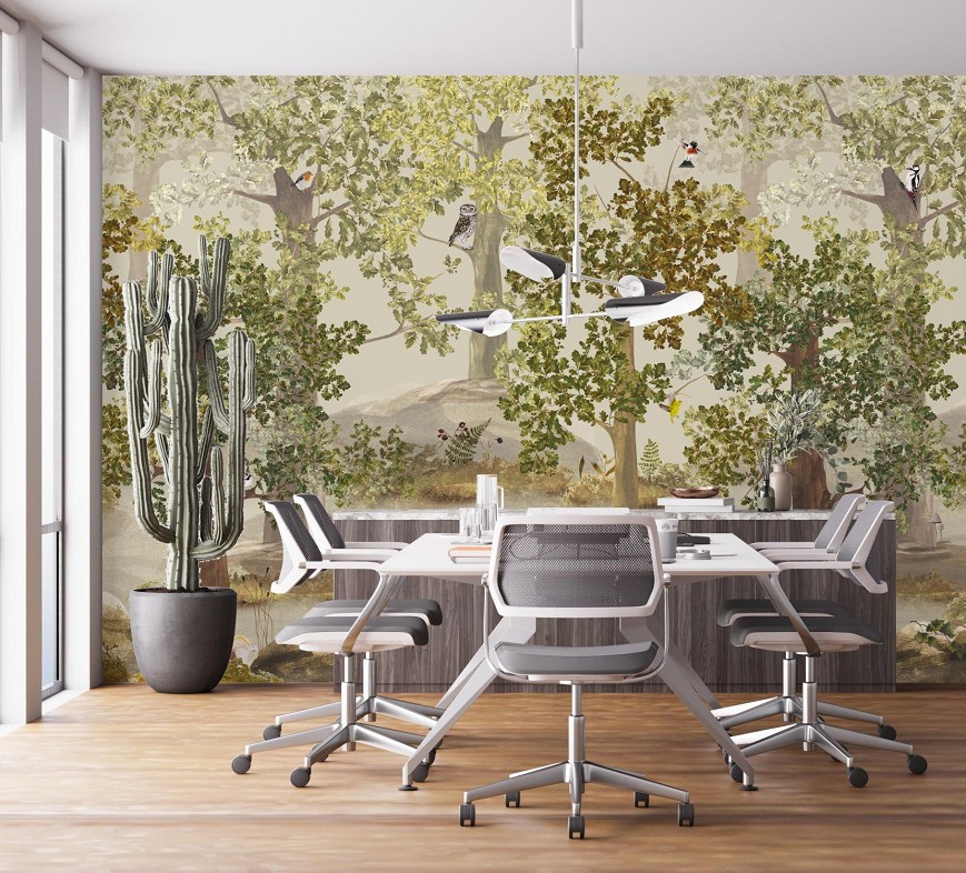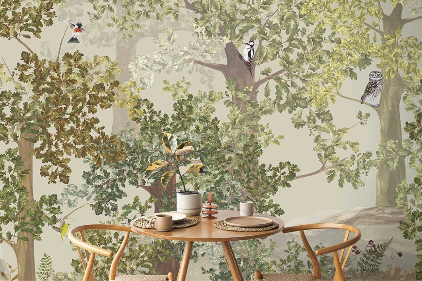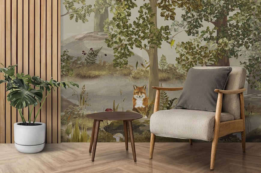 A tölgyfák árnyékában megbújó róka, a magasból figyelő kuvik és harkály, a gombák és a páfrányok mind hozzájárulnak, hogy varázslatos erdei hangulatot teremtsenek otthonunkban. Ez az egyedi tervezésű tapéta kitűnő választás lehet vidéki házak, nyaralók kiegészítőjeként, de a gyerekszobákban is mesés miliőt varázsolhatunk vele.(A minta megtalálható a Falmatricaként is kör formára szabva, öntapadó változatban)