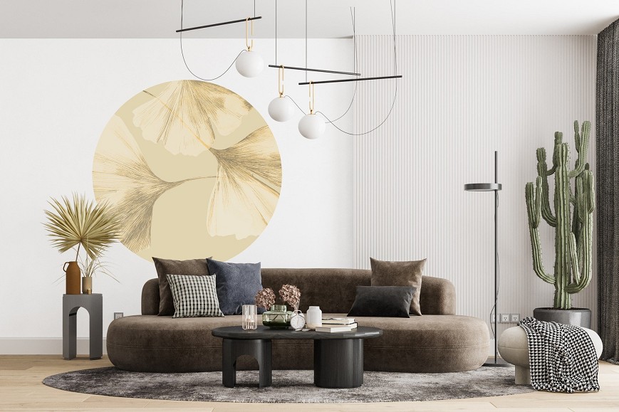 A Ginkgo biloba levelek visszafogott mintát alkotnak, ami minden enteriőrbe jól beilleszthető és kifinomult dekorációja lehet a tereknek. Bátran választhatják nappalik, hálószobák, étkezők vagy szálláshelyek különleges elemeként.
