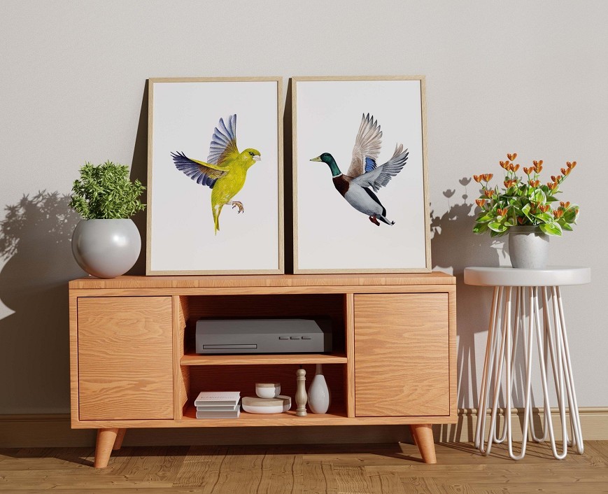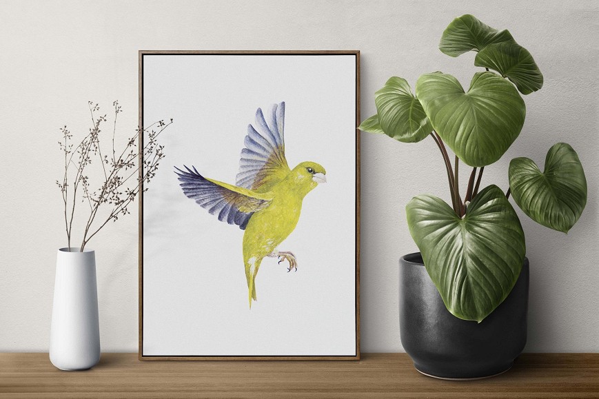 Hazai madarunk élénk zöld tollazattal – finom, természetközeli hangulatot árasztó festmény, amely frissességet visz a térbe. A repülő zöldike kecses szárnycsapásaival és könnyed röppenő mozdulataival valósághűen idézi meg a madár élénk életét, így nappalik, hálószobák vagy gyerekszobák dekorációjaként is ideális.