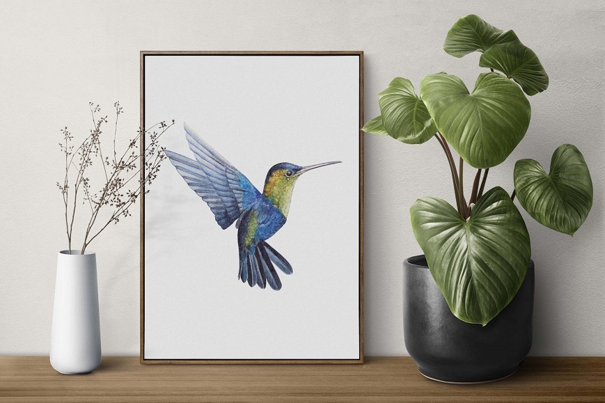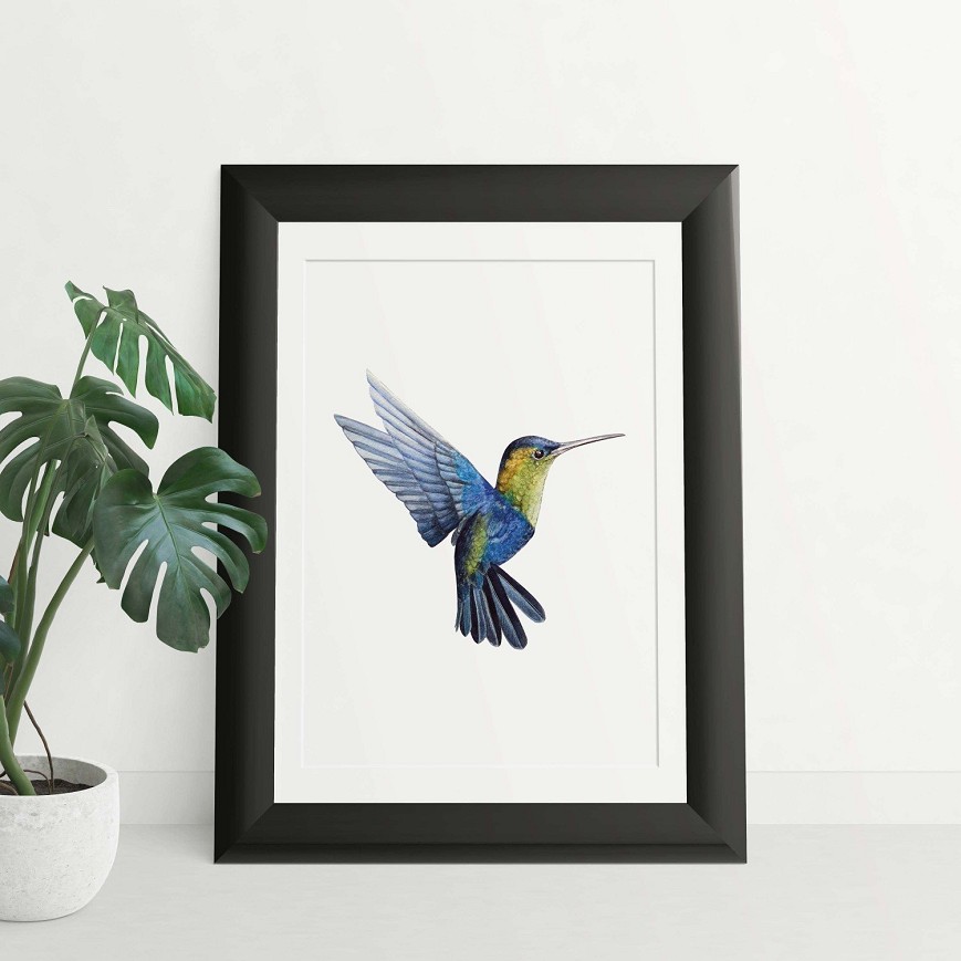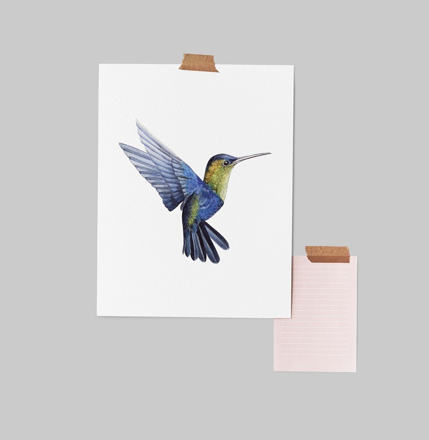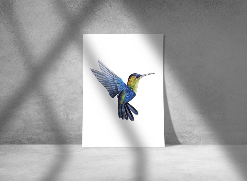 Az apró, lebegő kolibri élénk színei és kecses mozgása varázslatos energiát visz a térbe – egzotikus akvarell ékszer. A repülő kolibri gyors, finom szárnycsapásaival és éles, fürge mozdulataival a természet dinamikus életét idézi meg, így nappalik, hálószobák vagy gyerekszobák dekorációjaként is különleges élményt nyújt.