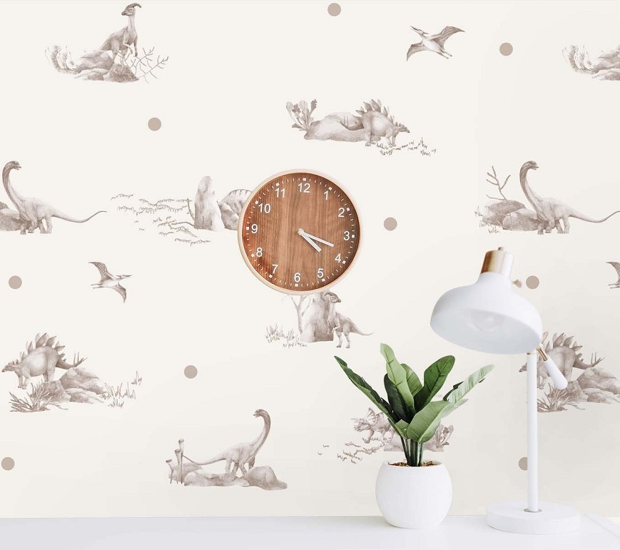 Egyedi tervezésű dínó mintás tapéta, amely garantáltan a kicsik kedvence lesz. A kézzel rajzolt minta képes harmóniát és letisztultságot teremteni a gyerekszobában. Könnyen beilleszthető a legtöbb gyerekszobába, ahol tökéletes kiegészítőjévé válik a kicsik birodalmának.