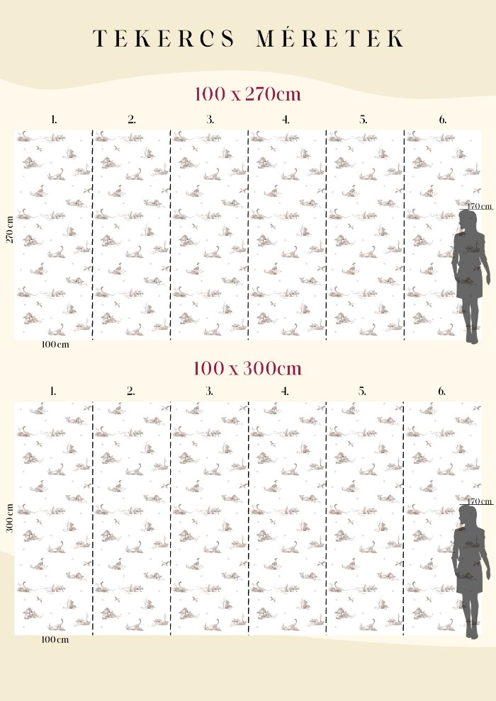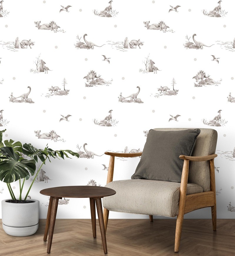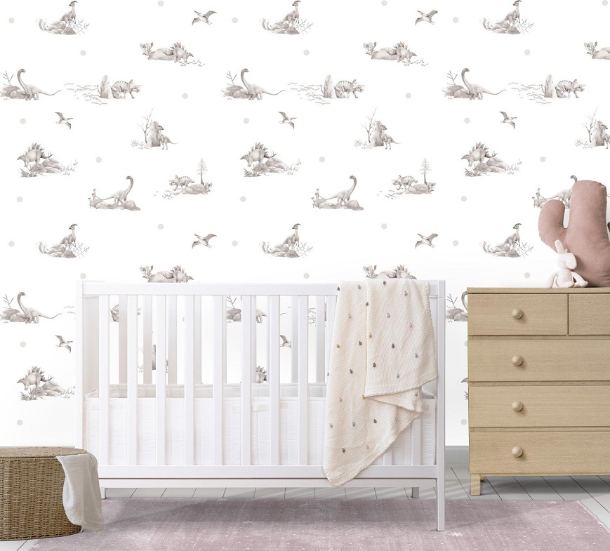 Egyedi tervezésű dínó mintás tapéta, amely garantáltan a kicsik kedvence lesz. A kézzel rajzolt minta képes harmóniát és letisztultságot teremteni a gyerekszobában. Könnyen beilleszthető a legtöbb gyerekszobába, ahol tökéletes kiegészítőjévé válik a kicsik birodalmának.