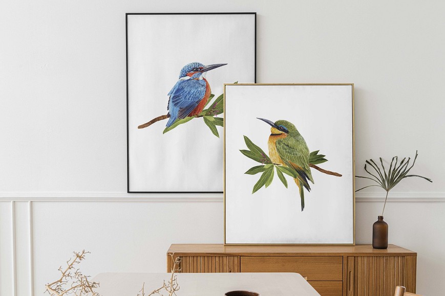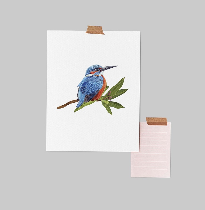 A villanó kékek és narancsok lenyűgözően jelennek meg ezen az akvarellen – a hazai vizeink ékköve, mely tökéletes kiegészítője lesz a vidéki otthonoknak. Az ágon ülő jégmadár kecses pózában és élénk színeiben a természet apró csodáit idézi meg, nyugalmat és életteliséget csempészve a nappalikba, hálószobákba vagy dolgozószobákba.
