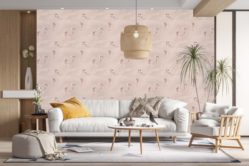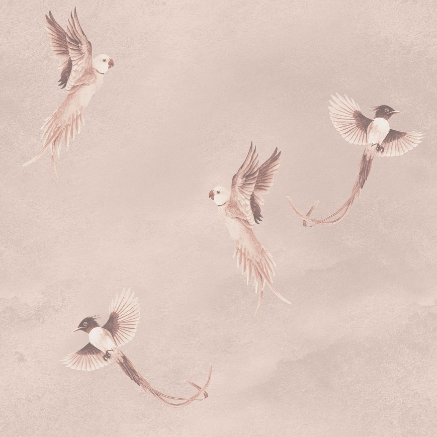 A madarak visszatérő elemei munkáimnak. Minden alkalommal rácsodálkozok a változatosságukra, ami folyamatos inspirációt ad a festéshez. Ennél a mintánál a madarak reptének áramlása adott inspirációt, ez visz lendületet és vidámságot a térbe. Ez a madár mintás tapéta harmonikus kiegészítője lehet nappaliknak, hálószobáknak, dolgozószobáknak, de kávézók és közösségi terek dísze is lehet.