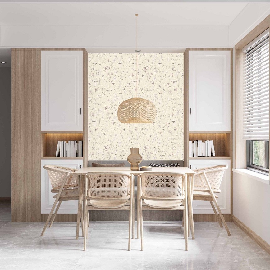 Ezt a kedves mintát a kirándulások során összegyűjtött kincsek inspirálták. A kézzel rajzolt apróságok finom kiegészítővé válnak a falon, ránézve nosztalgiázhatunk a természetben eltöltött emlékeinkből. Gyerekszobába is kitűnő választás lehet, ha szereti a visszafogott színeket és a nem harsány mintákat. Így a kicsik is böngészhetik a kis növényeket, terméseket és még kedvet is kaphatnak a rajzoláshoz.