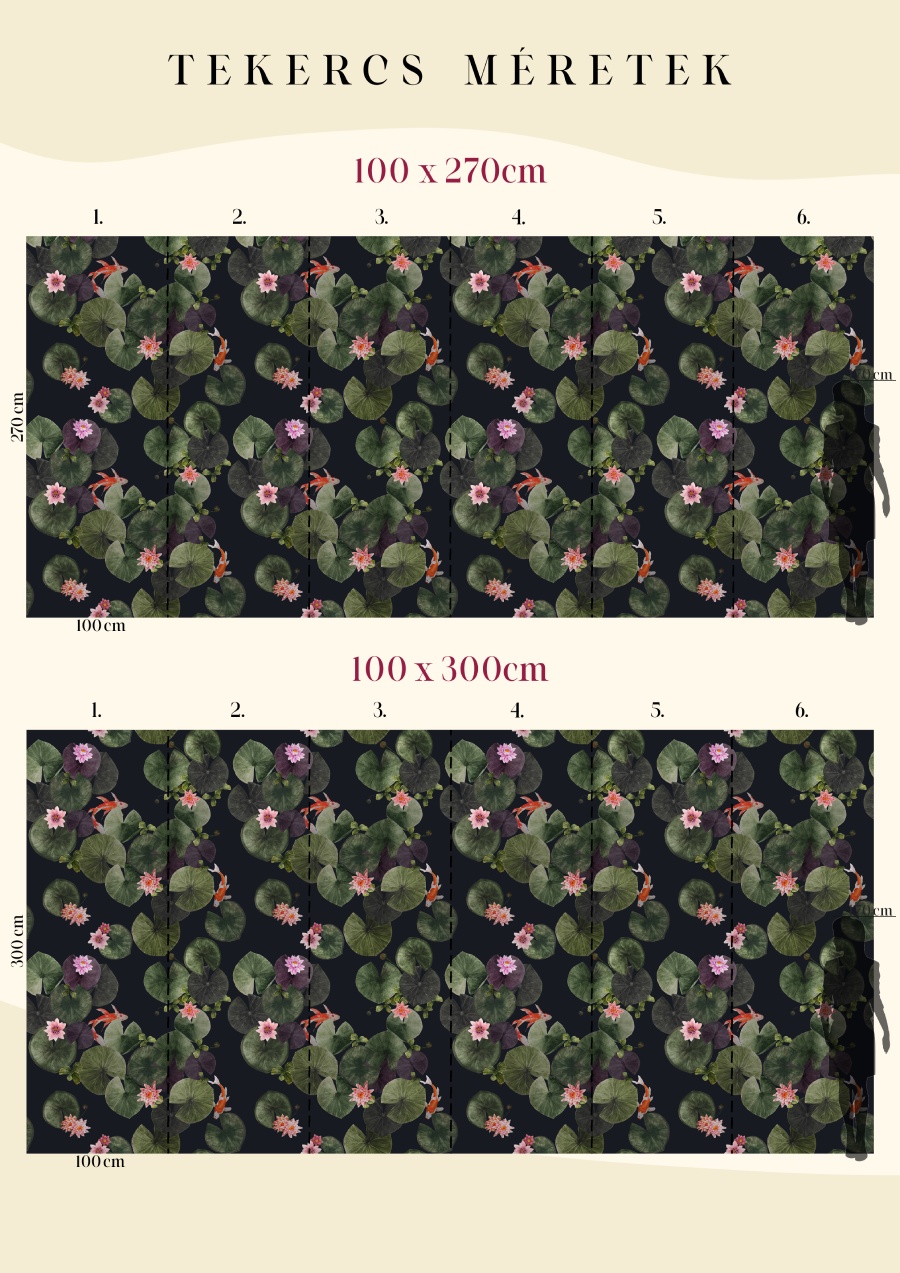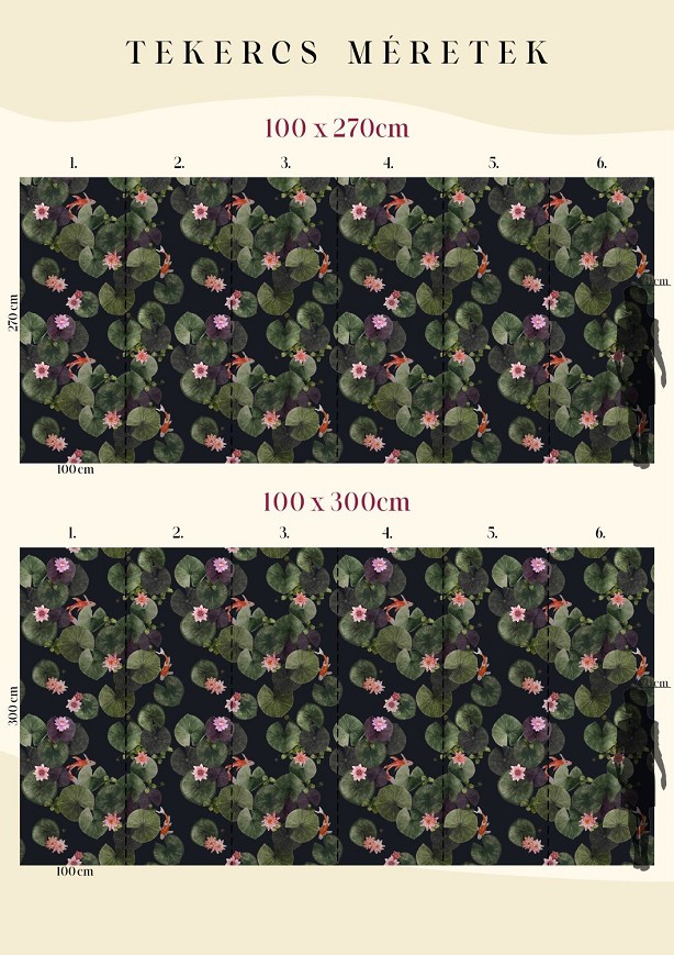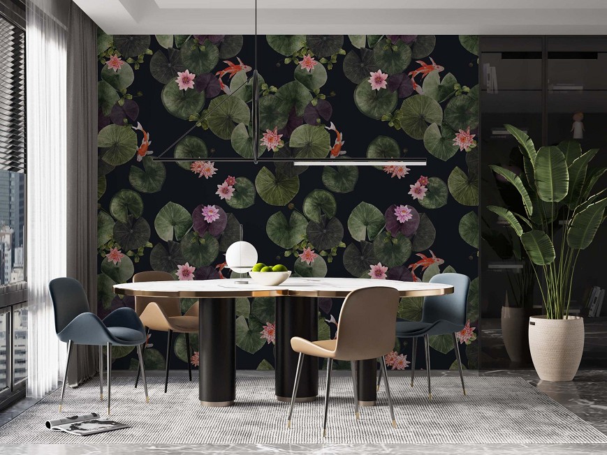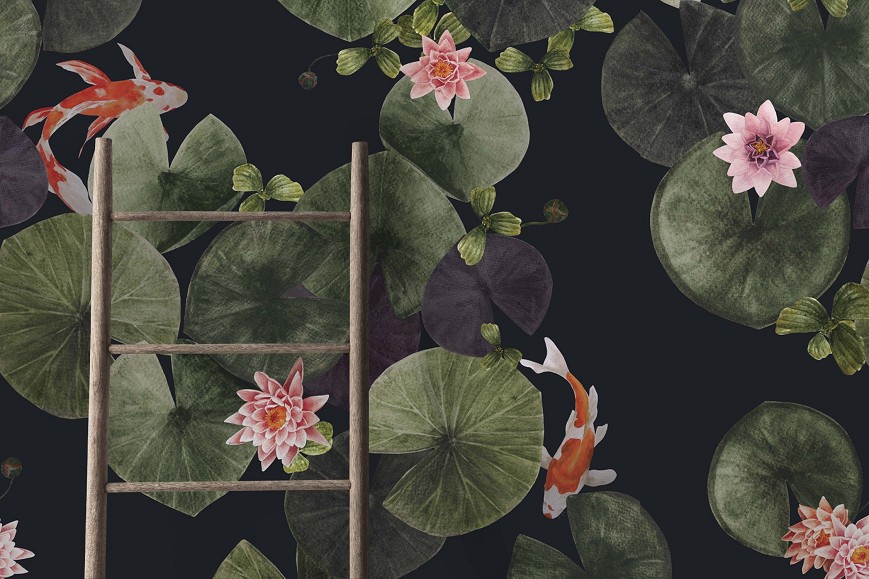 Az ázsiai kultúra két meghatározó motívuma a lótusz és a koi hal, melyek külön-külön is rengeteg szimbolikus jelentést hordoznak magukban. Ezek az energiák egyesülnek ebben a mintában is, így a tisztaság, a jövő iránti optimizmus, a siker, és az erő fogja átjárni az otthonunkat. A minta választható virágokkal, halakkal vagy csak levelekkel, többféle színvariációban. A sötét és színes változatok meglepő és hatásos enteriőröket hoznak létre, míg a pasztell árnyalatúak különleges hátteret varázsolnak.
