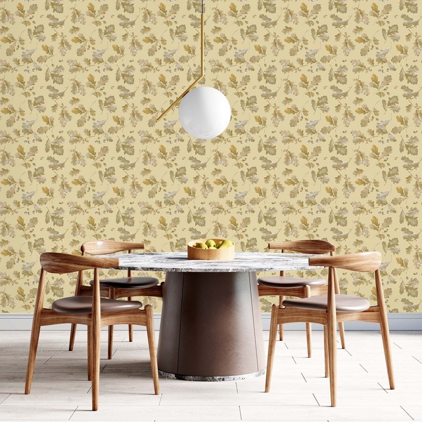 A tölgyfa levelek az erdő hangulatát hívják be otthonunkba. A bájos levelek mindenki számára ismerős látványa meghittséget teremt a nappaliban, étkezőben vagy a gyerekszobában. Kifinomult minta, mely harmóniával tölti meg a mindennapokat.