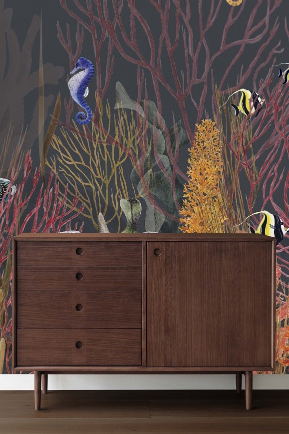 Nem csak a vízkedvelők gyönyörködhetnek ebben a nem mindennapi mintában. Izgalmas felületet alkot a halak és növények burjánzása. A fiatalok szobáiban is feltűnő dekorációs elem lehet, de a modern és natúr tereket is feldobhatja vele. Senki sem fog szó nélkül elmenni mellette.