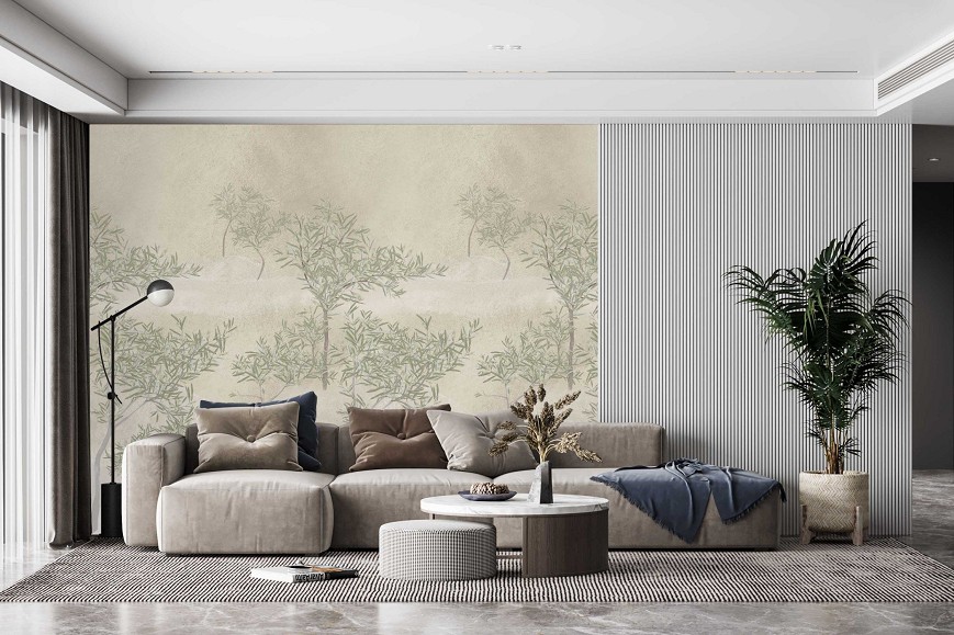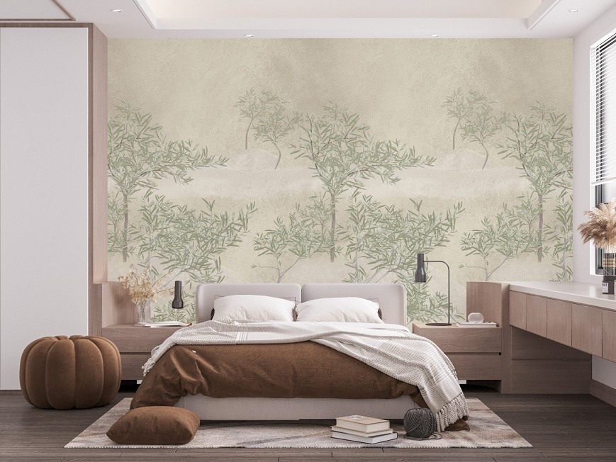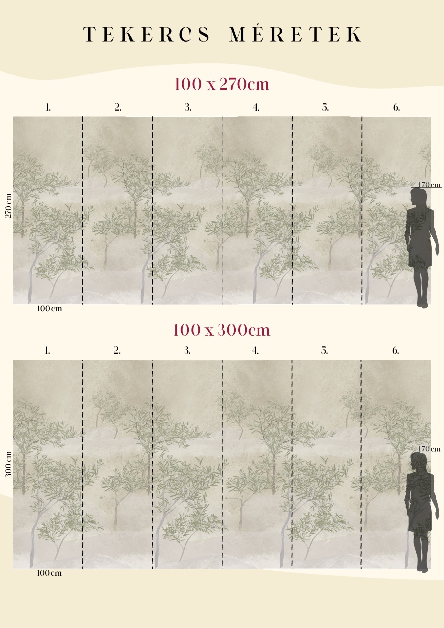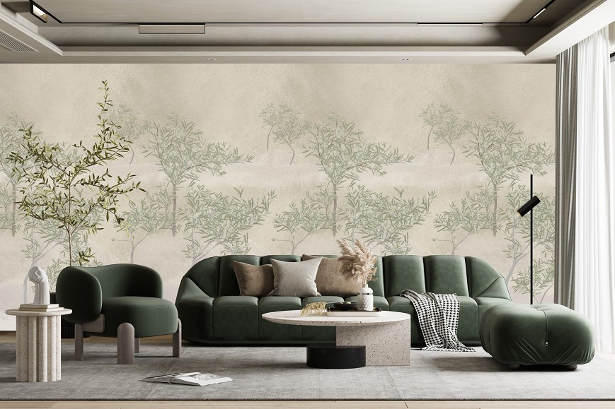 Az olajfa az ősi idők óta az örökkévalóság, a hosszú élet, a bölcsesség, a jóság, a tisztaság és a szépség szimbóluma és nem utolsó sorban csodálatos látványt nyújt. Ez inspirált a minta elkészítése közben, ami messziről nézve absztrakt, felhő szerű mintát alkot a falon. A háttér jelképezi a tájat és olíva földeket. Igazán nem mindennapi, modern minta ami különleges atmoszférát visz a térbe, de mégsem hivalkodó. Jól beilleszthető a legtöbb stílusú enteriőrbe, legyen az modern, vintage vagy minimál.