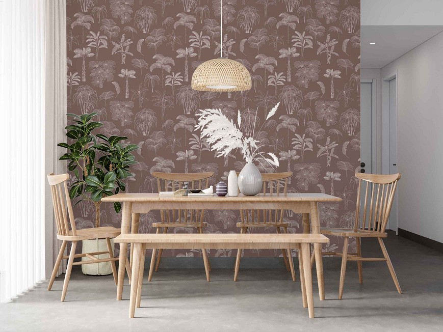 A pálmák és mediterrán növények változatossága örök inspirációval szolgál a tervezéshez, ezért ez visszatérő téma a tapétáim között. A rajzolt minta azok számára készült akik a letisztult designt részesítik előnyben, hiszen a vékony vonalvezetés kifinomult mintát eredményez.