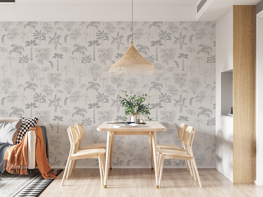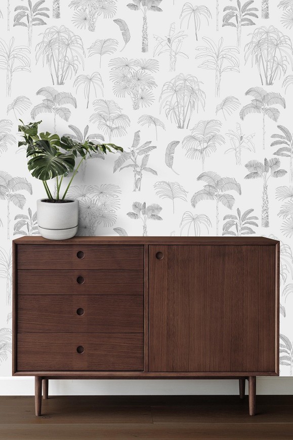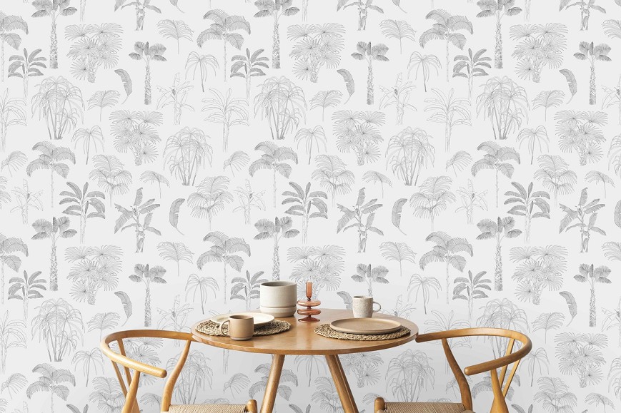 A pálmák és mediterrán növények változatossága örök inspirációval szolgál a tervezéshez, ezért ez visszatérő téma a tapétáim között. A rajzolt minta azok számára készült akik a letisztult designt részesítik előnyben, hiszen a vékony vonalvezetés kifinomult mintát eredményez.