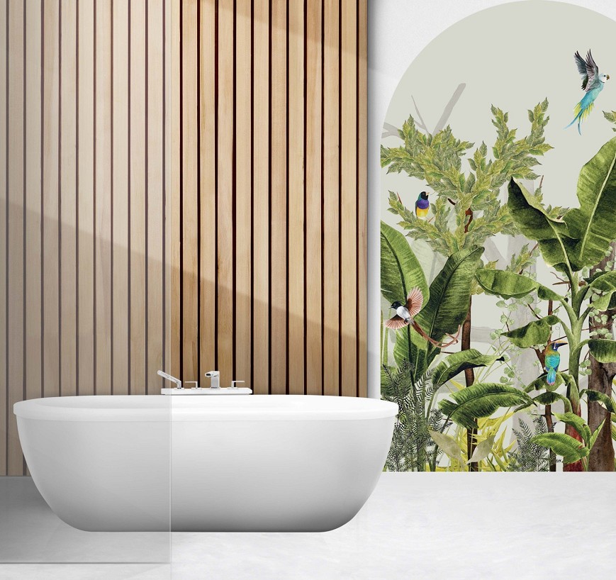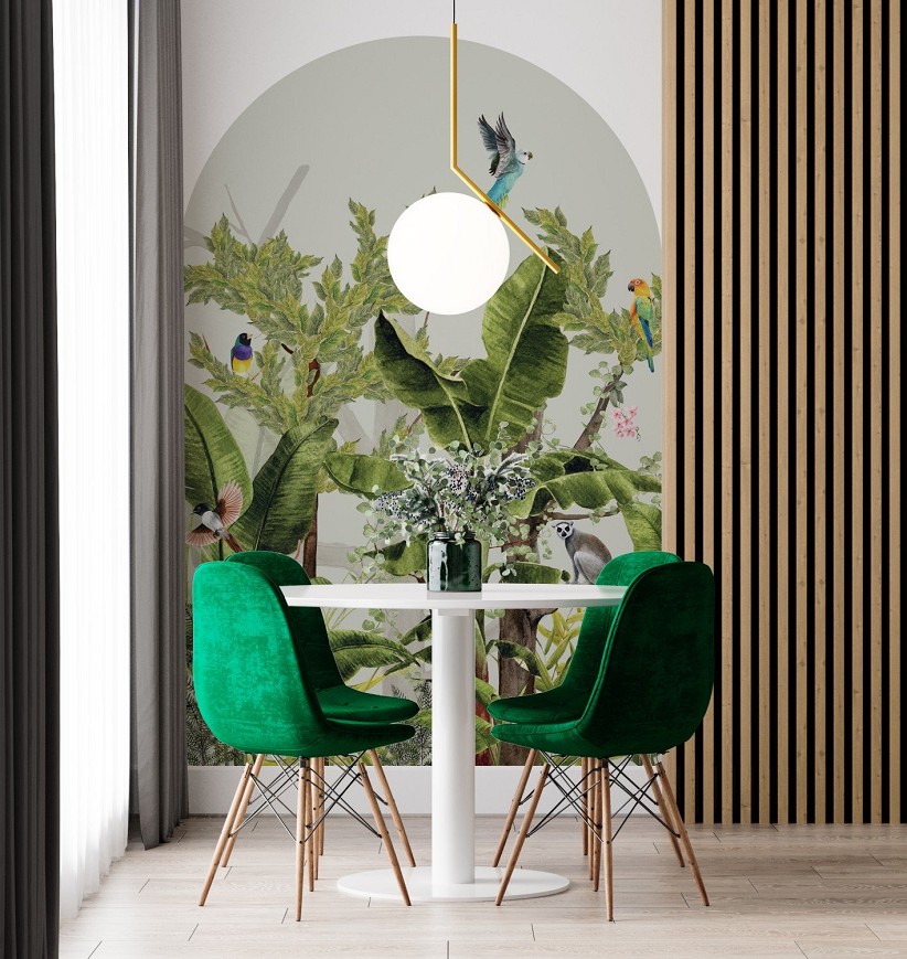 A dzsungel ihlette tapétából kiemelt egy-egy részlet önmagában is megállja a helyét, így ha nem szeretne egy teljes falat letapétázni, de mégis szereti a különleges mintákat, akkor bátran válasszon a paradicsomi minták közül. Akár több mintát is kombinálhat egymás mellett.