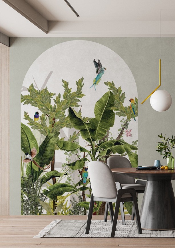 A dzsungel ihlette tapétából kiemelt egy-egy részlet önmagában is megállja a helyét, így ha nem szeretne egy teljes falat letapétázni, de mégis szereti a különleges mintákat, akkor bátran válasszon a paradicsomi minták közül. Akár több mintát is kombinálhat egymás mellett.