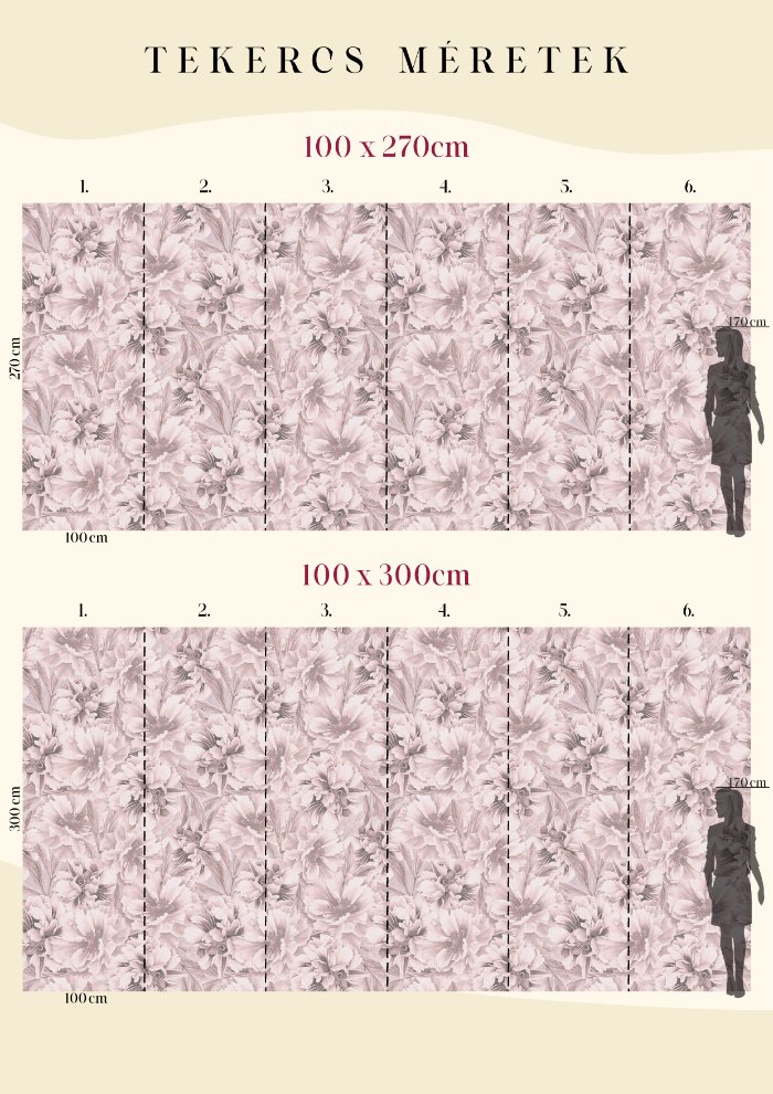 A bazsarózsát a virágok királyaként is emlegetik, így ez a minta tökéletes választás lehet az elegancia kedvelőinek. Bár a virágok nagy felületen jelennek meg, mégsem tolakodók, inkább izgalmas összhatást érnek el. Hálószobák, nappalik, dolgozószobák éke lehet.