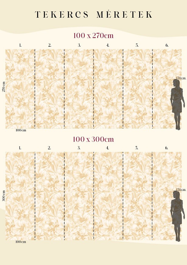 A bazsarózsát a virágok királyaként is emlegetik, így ez a minta tökéletes választás lehet az elegancia kedvelőinek. Bár a virágok nagy felületen jelennek meg, mégsem tolakodók, inkább izgalmas összhatást érnek el. Hálószobák, nappalik, dolgozószobák éke lehet.