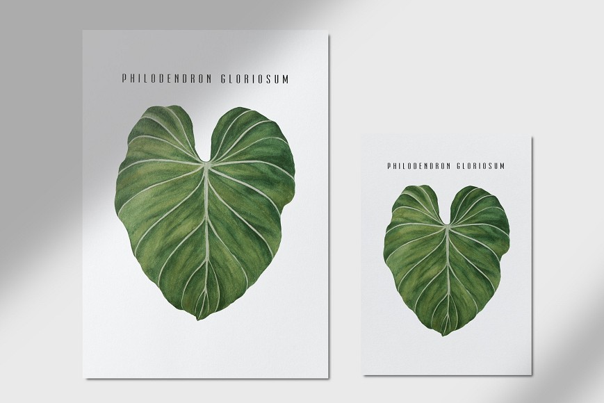 A philodendron jellegzetes, nagy levele finoman megjelenik akvarell festményen, természetes zöld árnyalataival és részletgazdag szerkezetével. Elegáns, természetközeli dekoráció, amely frissességet és nyugalmat visz nappalikba, hálószobákba vagy dolgozószobákba.