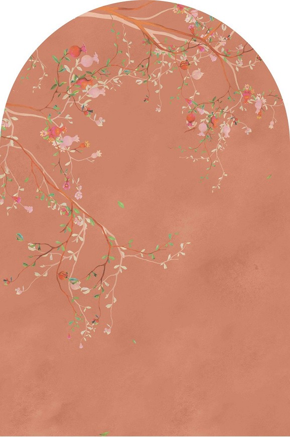 A gránátalma az örök ifjúság, a termékenység, a halhatatlanság és az élet teljességének szimbóluma különböző kultúrákban és vallásokban. Hosszasan lehetne sorolni jótékony hatásait is, de jelen esetben maga a látvány, a gyümölcsök jellegzetes megjelenése és szépsége az, ami ezen a mintán megelevenedik. Az egzotikus gyümölcsök és a köztük megbújó szitakötők különleges látványa harmóniát teremt minden enteriőrben.
