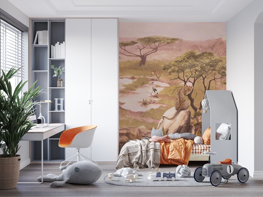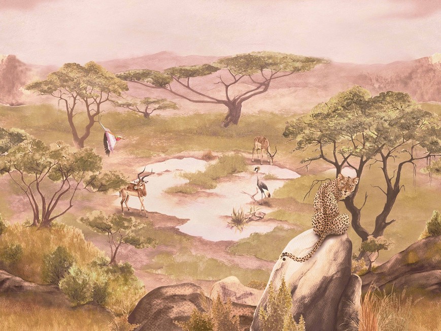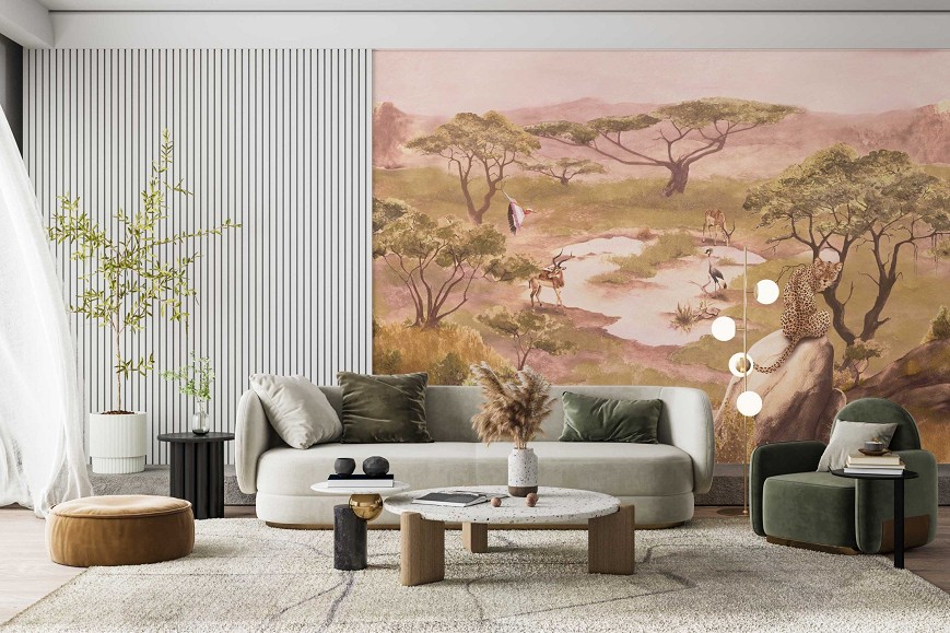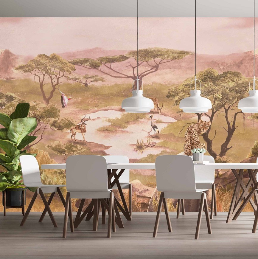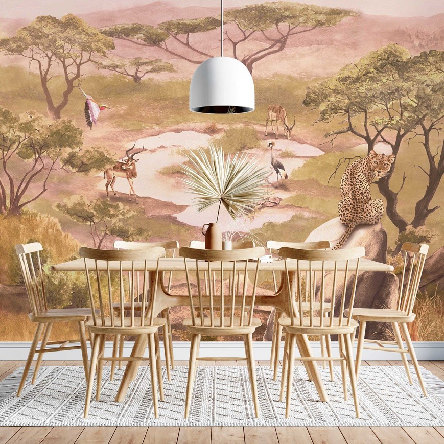 A szavannák az egyik legkülönlegesebb földrajzi jelenségek, változatos és gazdag állatvilággal. A füves, cserjés, ligetes tájak jellegzetes akáciái meghatározzák a látványt. Ezt a nem mindennapi látványt hivatott bemutatni ez a tájkép tapéta, mely meghatározó eleme lesz az enteriőrnek.