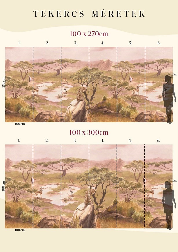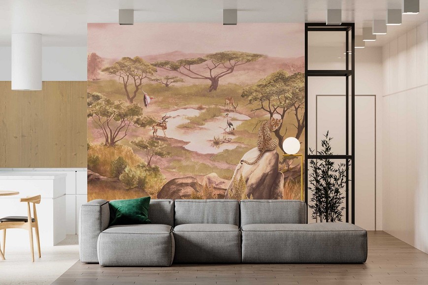 A szavannák az egyik legkülönlegesebb földrajzi jelenségek, változatos és gazdag állatvilággal. A füves, cserjés, ligetes tájak jellegzetes akáciái meghatározzák a látványt. Ezt a nem mindennapi látványt hivatott bemutatni ez a tájkép tapéta, mely meghatározó eleme lesz az enteriőrnek.