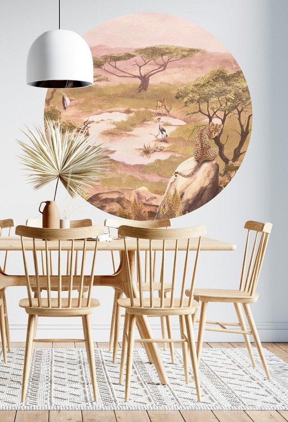 A szavannák az egyik legkülönlegesebb földrajzi jelenségek, változatos és gazdag állatvilággal. A füves, cserjés, ligetes tájak jellegzetes akáciái meghatározzák a látványt. Ezt a nem mindennapi látványt nyújtó falmatrica meghatározó eleme lesz az enteriőrnek.