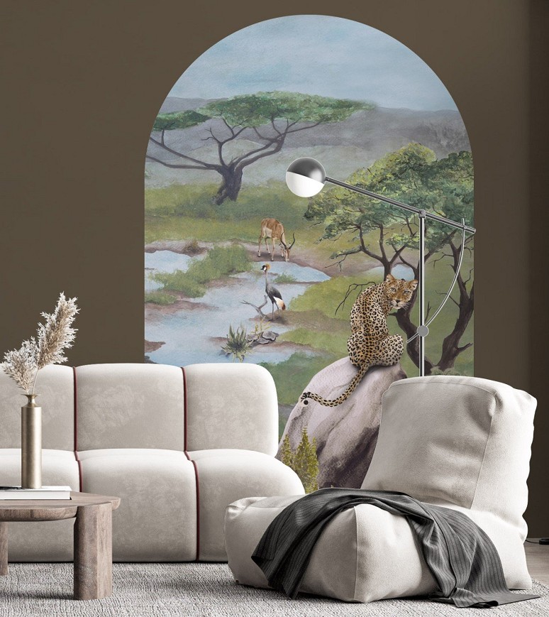 A szavannák az egyik legkülönlegesebb földrajzi jelenségek, változatos és gazdag állatvilággal. A füves, cserjés, ligetes tájak jellegzetes akáciái meghatározzák a látványt. Ezt a nem mindennapi látványt nyújtó falmatrica meghatározó eleme lesz az enteriőrnek.