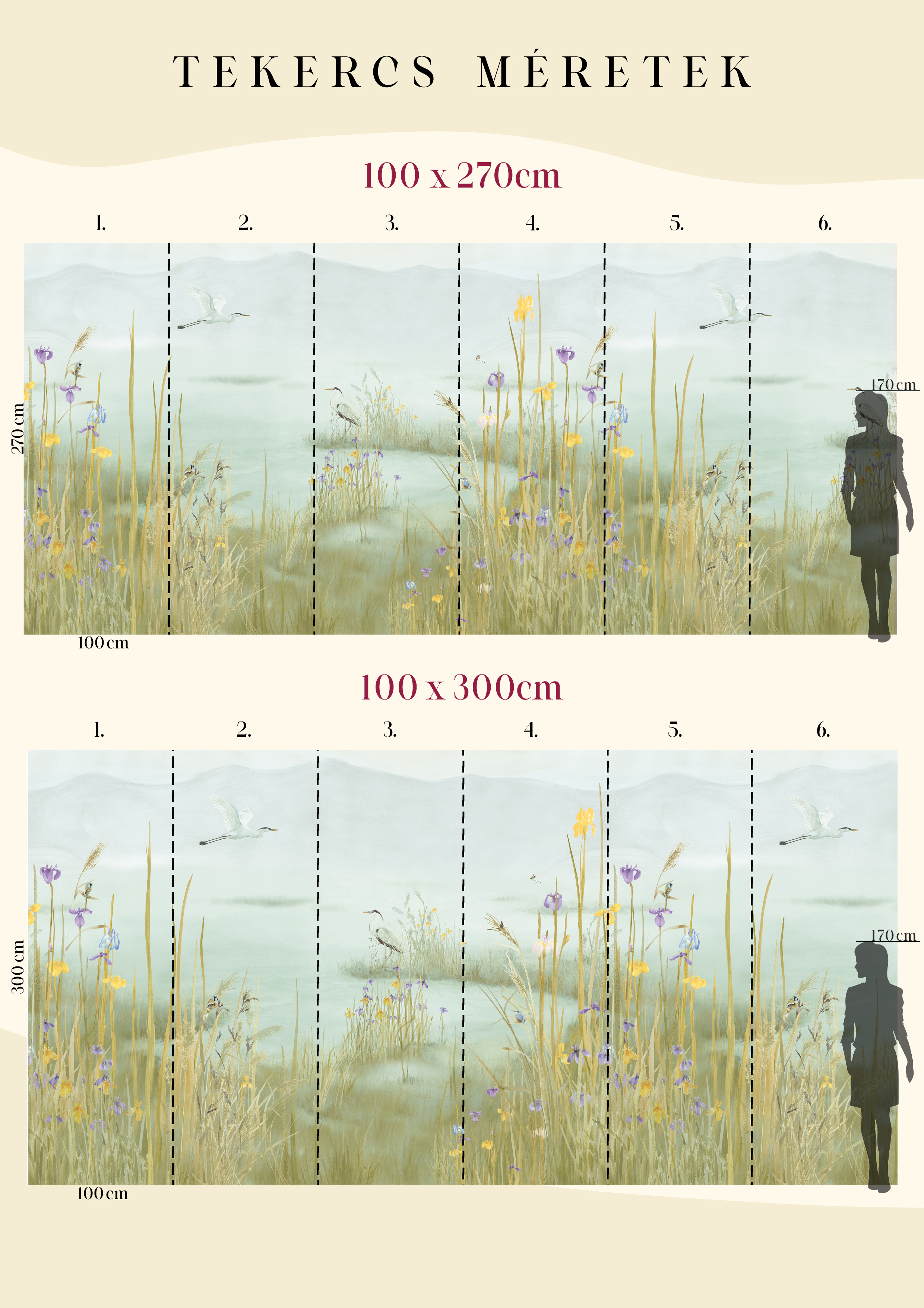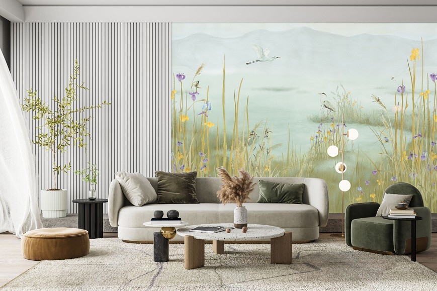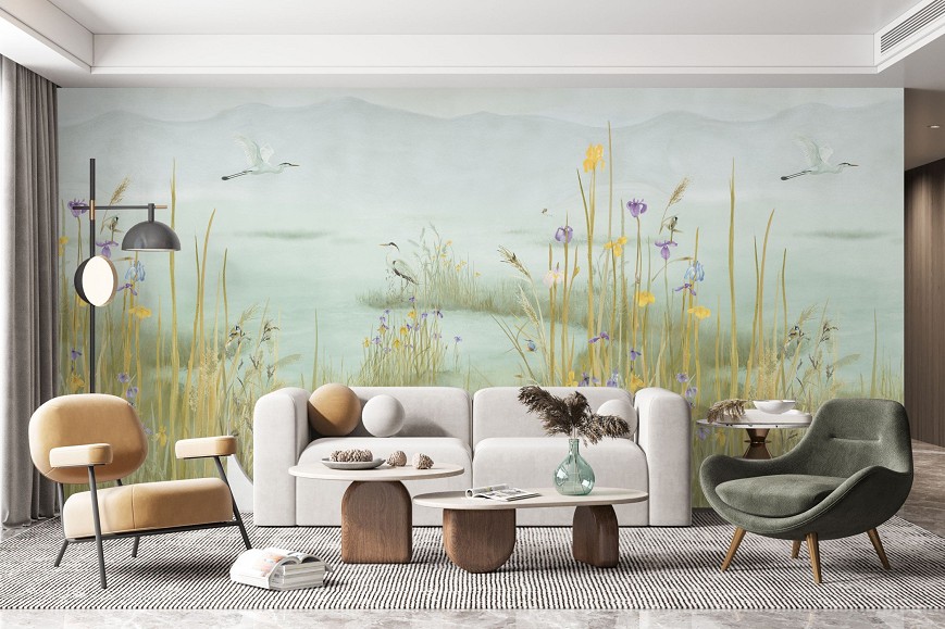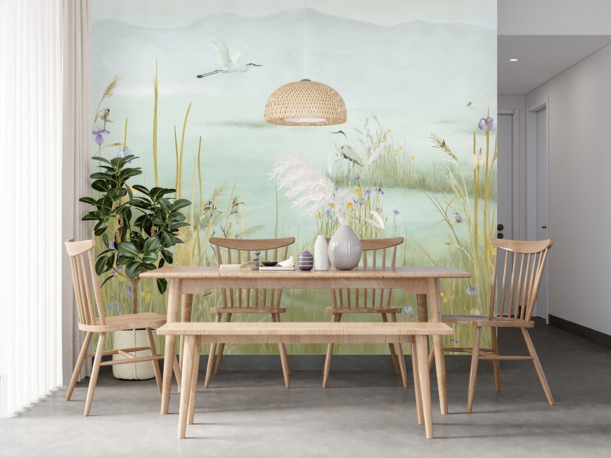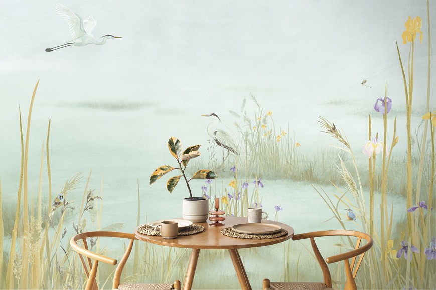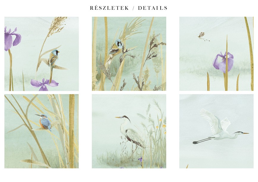 Ez a tapétaminta egy csendes tó partjára hív, arra a pillanatra, amikor a világ lelassul. Az akvarell finom rétegei lágyan olvadnak egymásba, nincsenek éles kontúrok, csak egy hangulat, mint egy emlék, amelyhez jó visszatérni. A festésben ott van a kéz nyoma, az egyediség lenyomata. Ez a tapéta nem uralja a teret, hanem körülölel: hátteret ad a csendnek, a gondolatoknak, a megérkezés érzésének. Olyan, mintha a falak mögött mindig ott lenne a tó – tükrözve azt, aki ránéz.