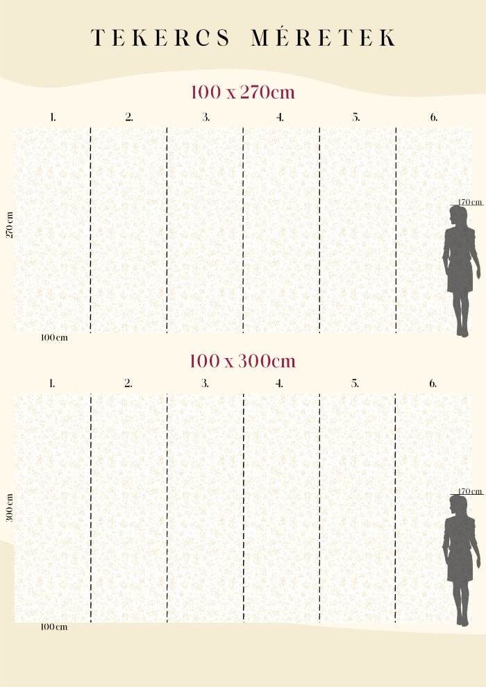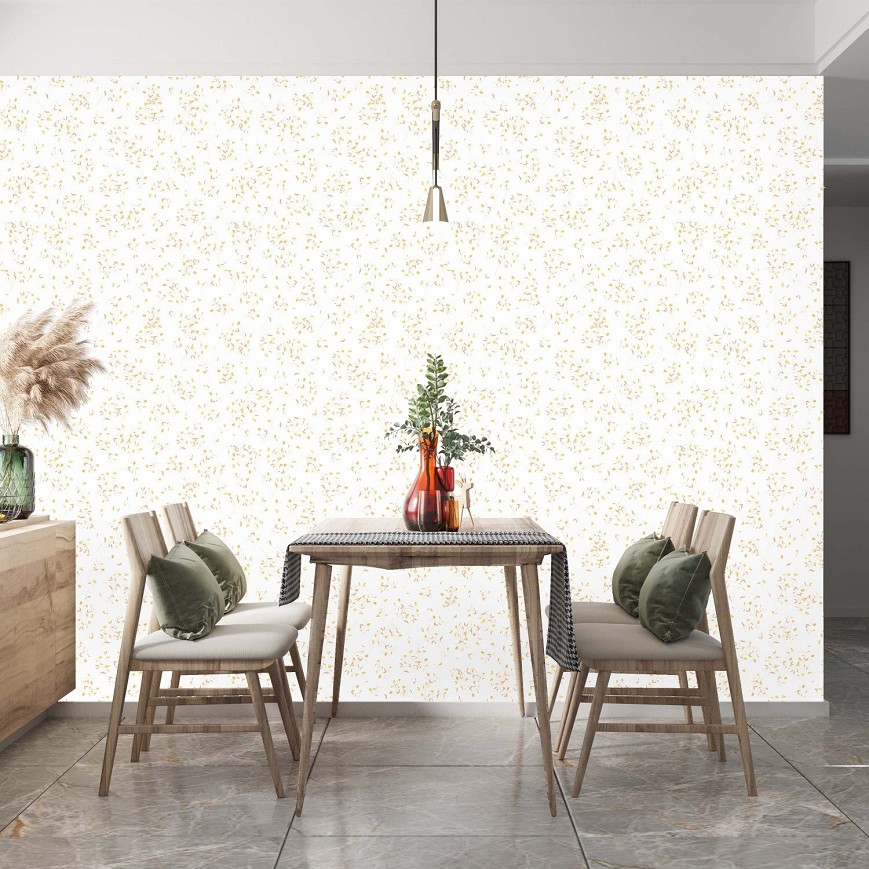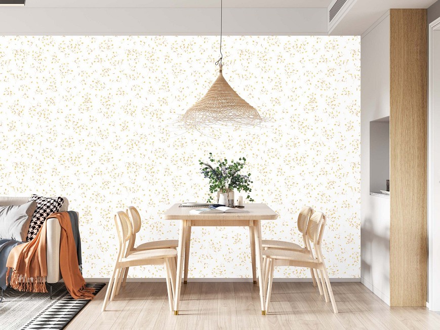 A kacskaringós növények apró foltokként töltik meg a teret. Kellemes és elegáns hangulatot teremthetünk a nappaliban, hálószobában, előszobákban vagy az étkezőben. Vagy a gyerekszobák bájos színfoltja lehet ez a kis virágos minta. Modern, skandináv és vintage stílusú terekbe is bátran felhasználható.