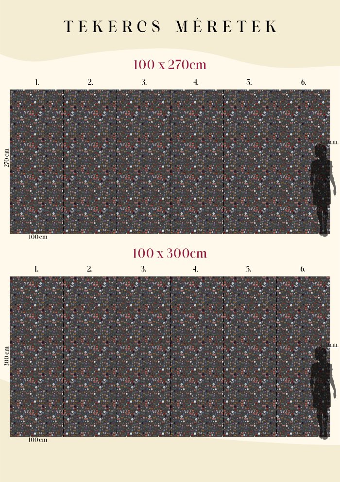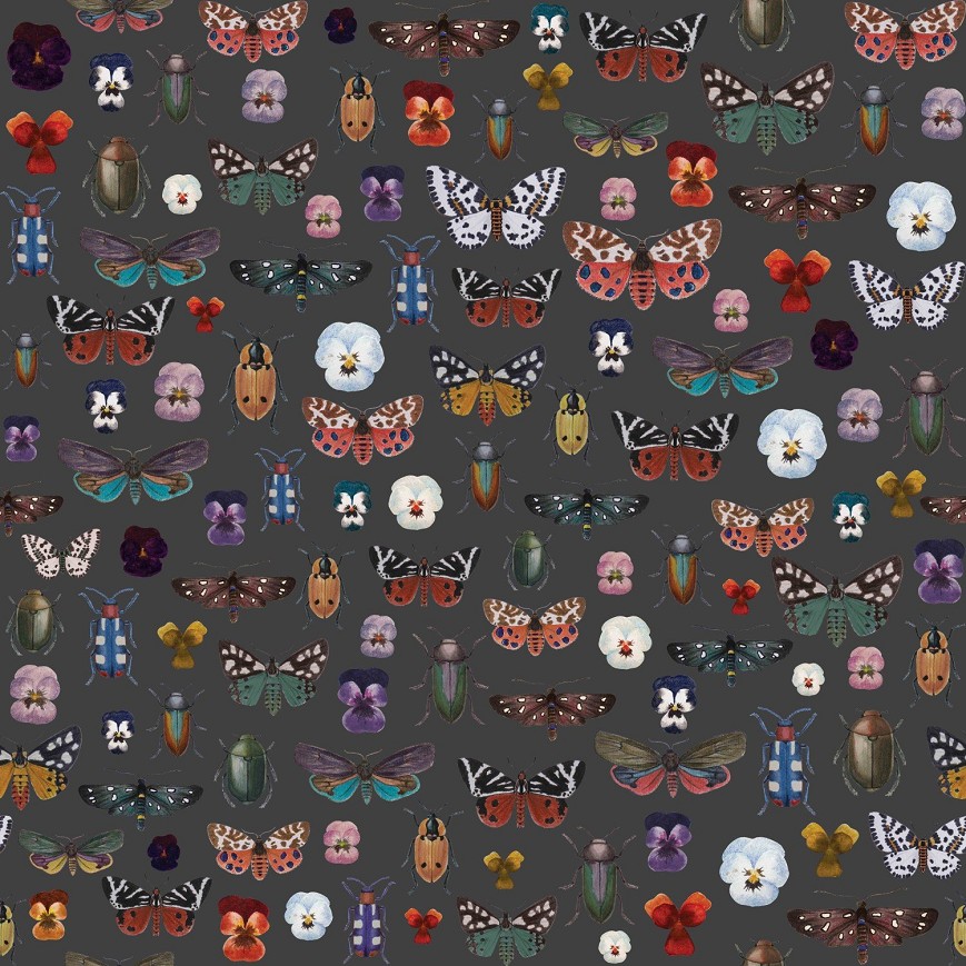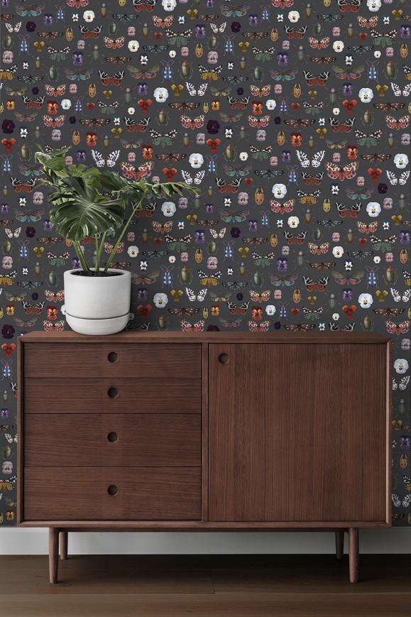 Apró kincsek: bogarak, lepkék és árvácskák. Ez a minta a különböző mintázatokban rejlő párhuzamot rejti magában. A lepkék mintha virágok lennének és fordítva. Gyerekszobába tökéletes választás lehet, kicsik és nagyok is felfedezhetik a mintázatokat. De akár egy előszobát, hálószobát vagy dolgozót is nagyszerűen feldobhatunk vele.