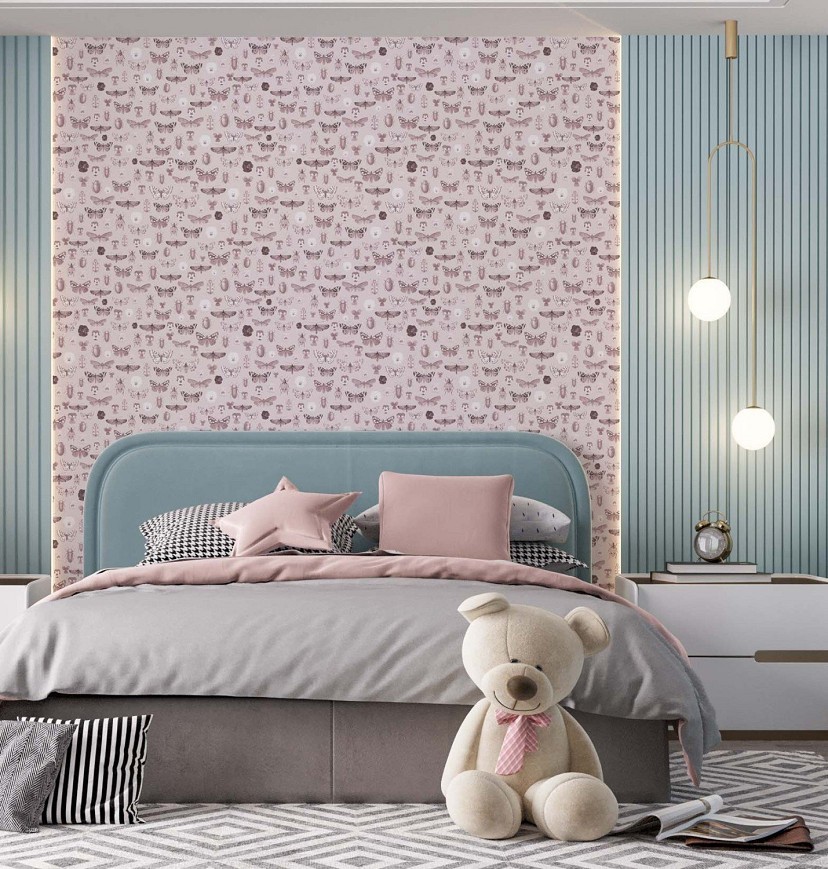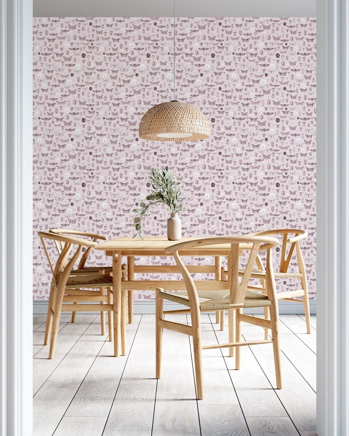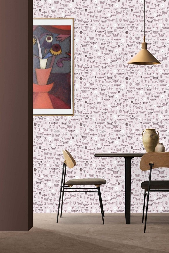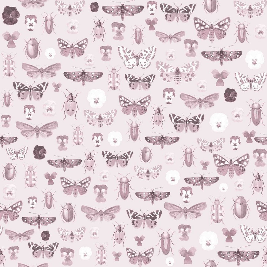 Apró kincsek: bogarak, lepkék és árvácskák. Ez a minta a különböző mintázatokban rejlő párhuzamot rejti magában. A lepkék mintha virágok lennének és fordítva. Gyerekszobába tökéletes választás lehet, kicsik és nagyok is felfedezhetik a mintázatokat. De akár egy előszobát, hálószobát vagy dolgozót is nagyszerűen feldobhatunk vele.