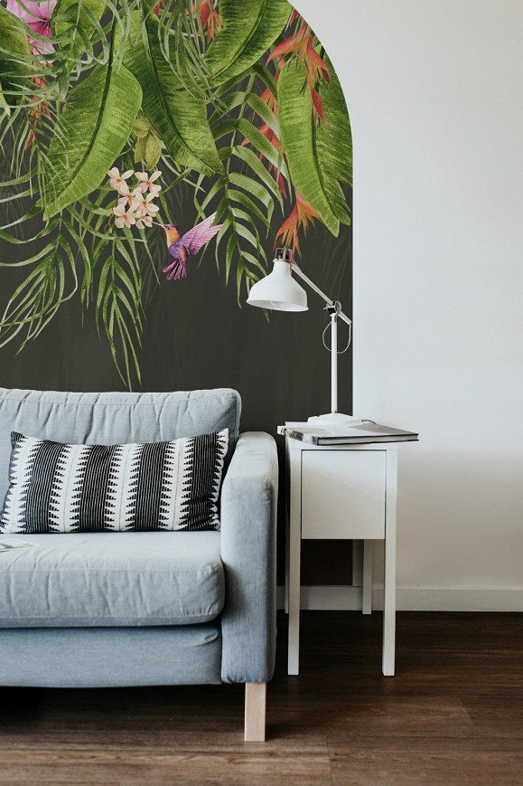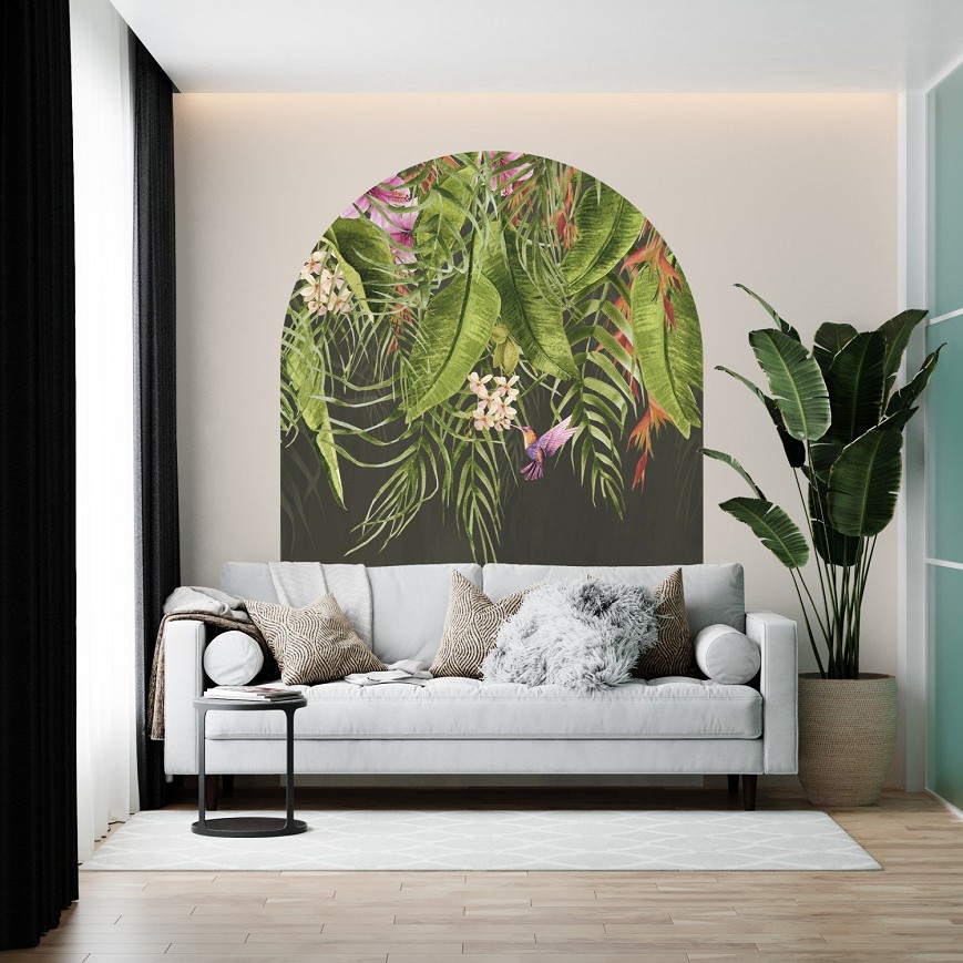 Egzotikus hangulatot varázsolhatunk otthonunkba ezzel a trópusi mintás falmatricával. A burjánzó növények és kolibrik gondoskodnak róla, hogy ne teljenek el szürkén a hétköznapok.