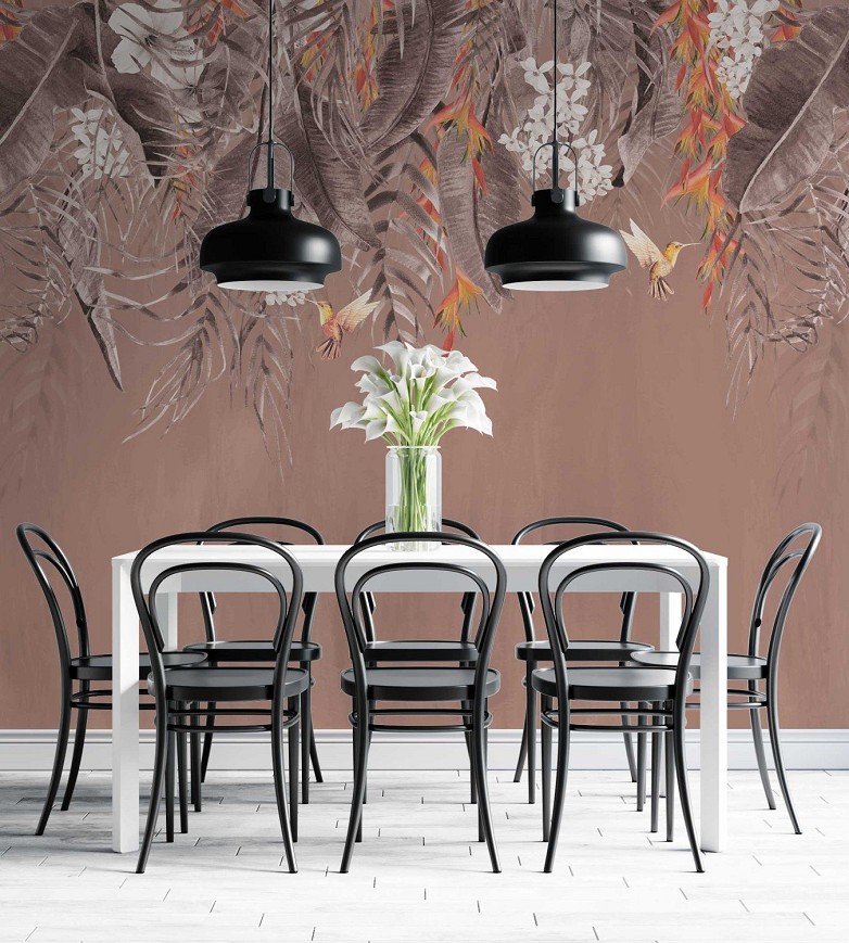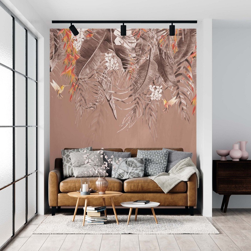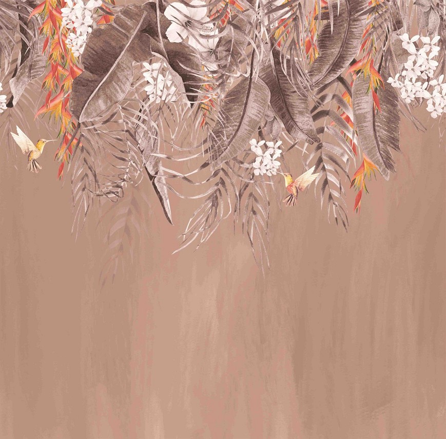 Egzotikus hangulatot varázsolhatunk otthonunkba ezzel a trópusi lugas tapétával. A burjánzó növények és kolibrik gondoskodnak róla, hogy ne teljenek el szürkén a hétköznapok.