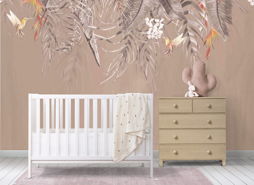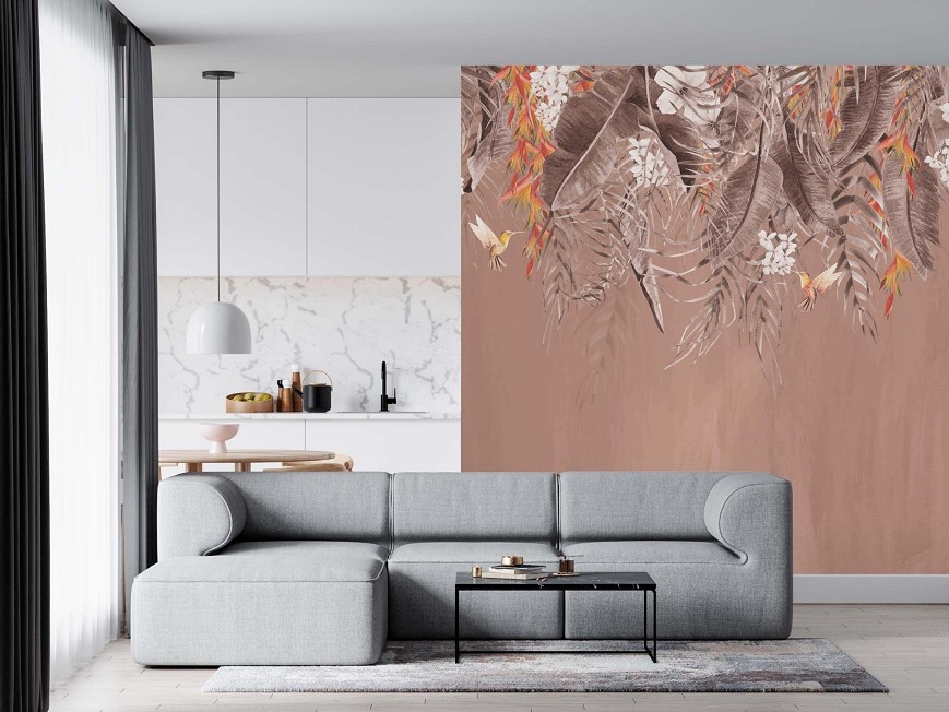 Egzotikus hangulatot varázsolhatunk otthonunkba ezzel a trópusi lugas tapétával. A burjánzó növények és kolibrik gondoskodnak róla, hogy ne teljenek el szürkén a hétköznapok.